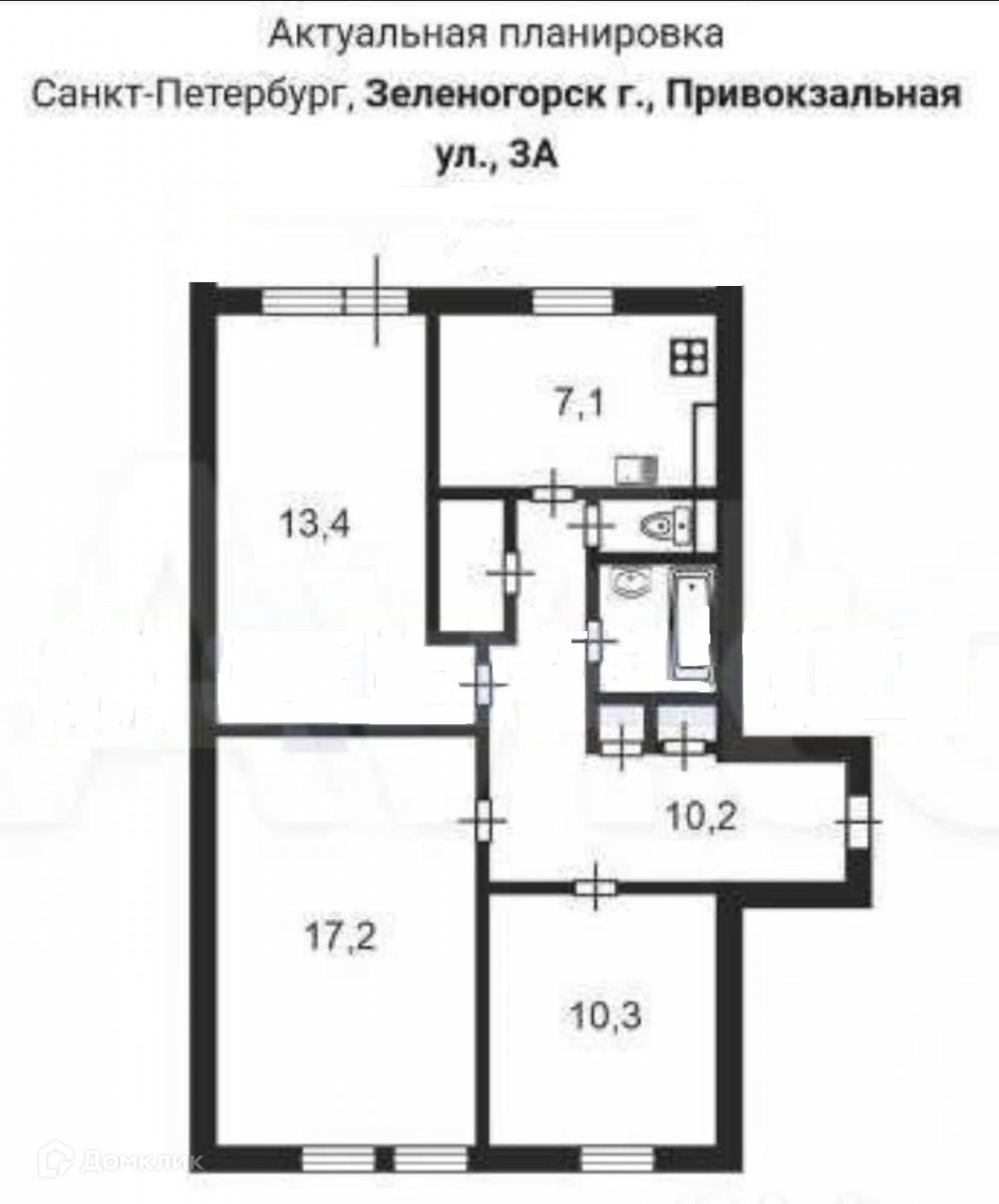 3-комнатная квартира, 64.6 м2, этаж 1 / 9, на продажу в Зеленогорске, Привокзальная улица, 3