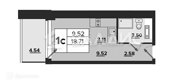 Балкон, лоджия 1 балкон