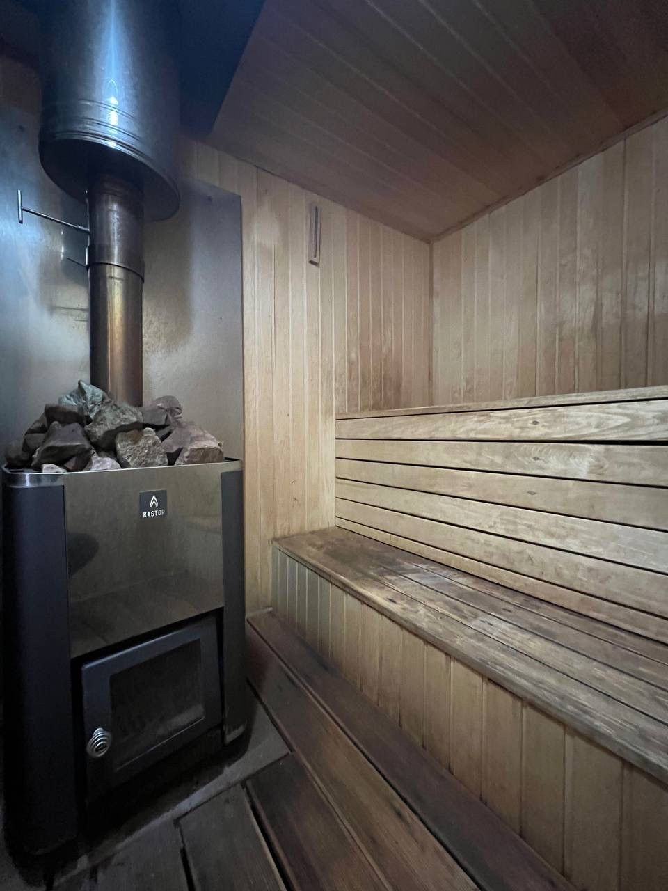 • Печка в бане финская. Очень быстро нагревается. Время топки до 100 градусов 1-1,5. Очень хорошо держит жар. В бане душевая кабина из плиточной мозайки на небольшом подиуме.