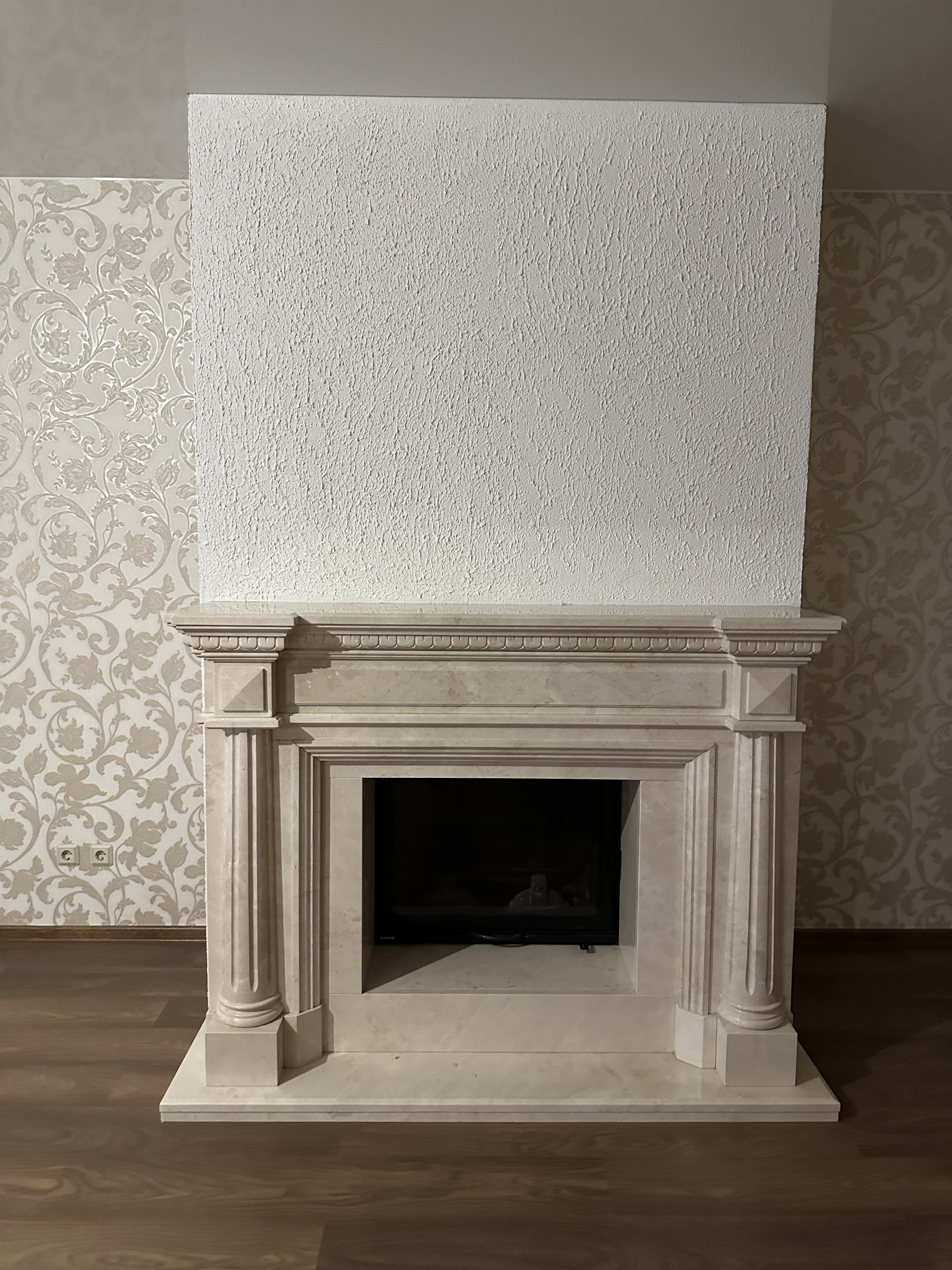 • Невероятный красоты камин в гостиной из натурального испанского мрамора с итальянской топкой. Огонь горит очень красиво и ровно. Дает много тепла.
