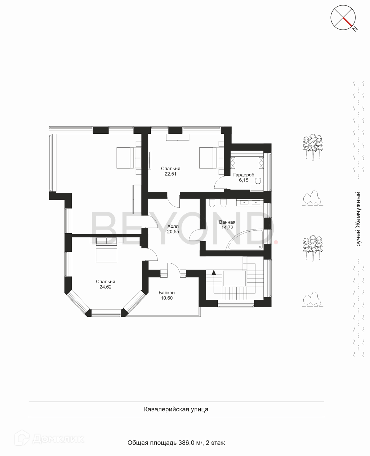 Дом расположен в глубине парковой зоны, на ровном участке 1065 кв. м в собственности, и граничит с территорией водоохранной зоны Жемчужного ручья, которая составляет 650 кв. м. Имеет магистральное газоснабжение, с увеличенными допусками. Электроснабжение 15 кВт, 380 В. Артезианская скважина. Локальная канализация.