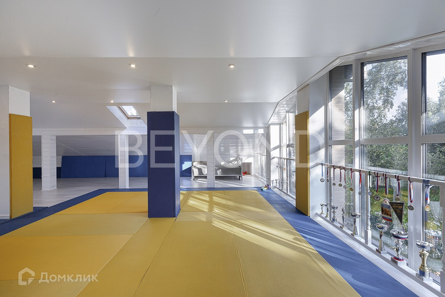 На 2 этаже: 3 спальни с гардеробом, ванная комната 15 кв. м, балконы – 10,5 кв. м и 20 кв. м. На 3 мансардном этаже: спортзал и игровая со спальной зоной.