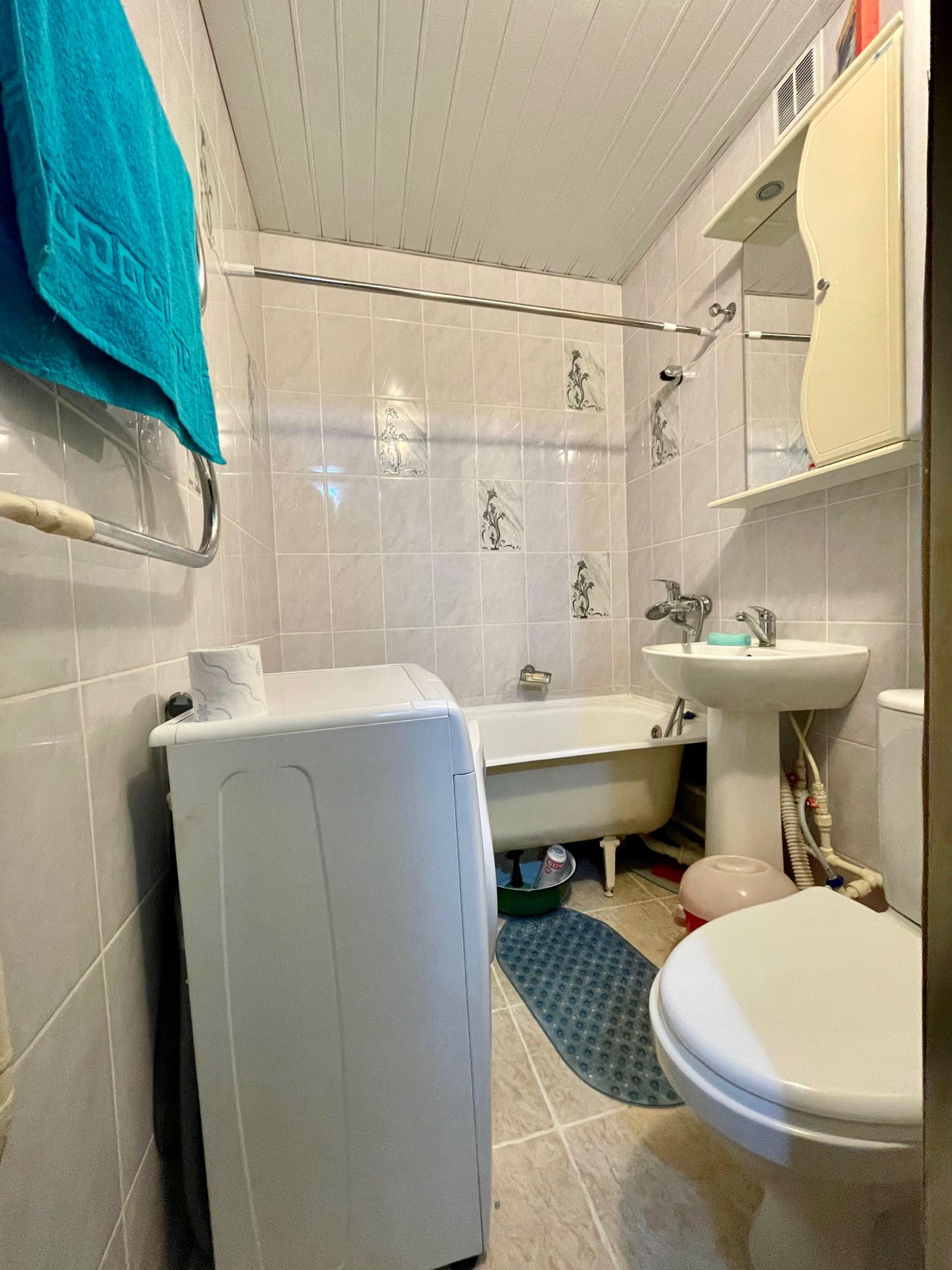 Санузел совмещенный, есть стиральная машина.