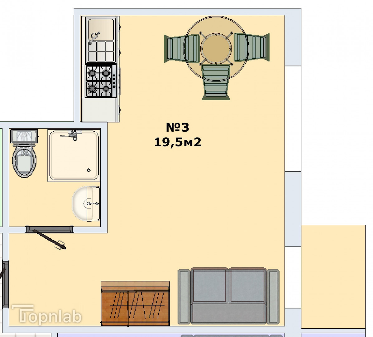 Общая площадь 19.5 м2