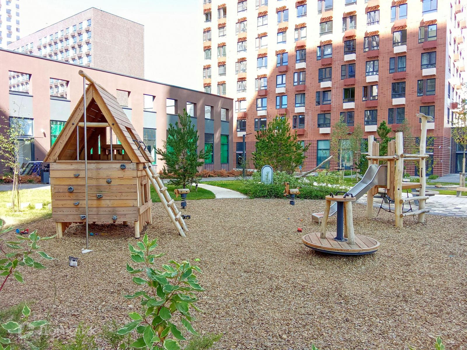 - детские и спортивные площадки, благоустроенная территория с прогулочными аллеями;