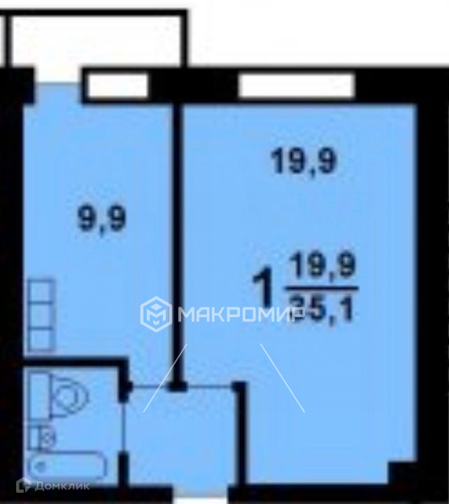 Жилая площадь 19.9 м2