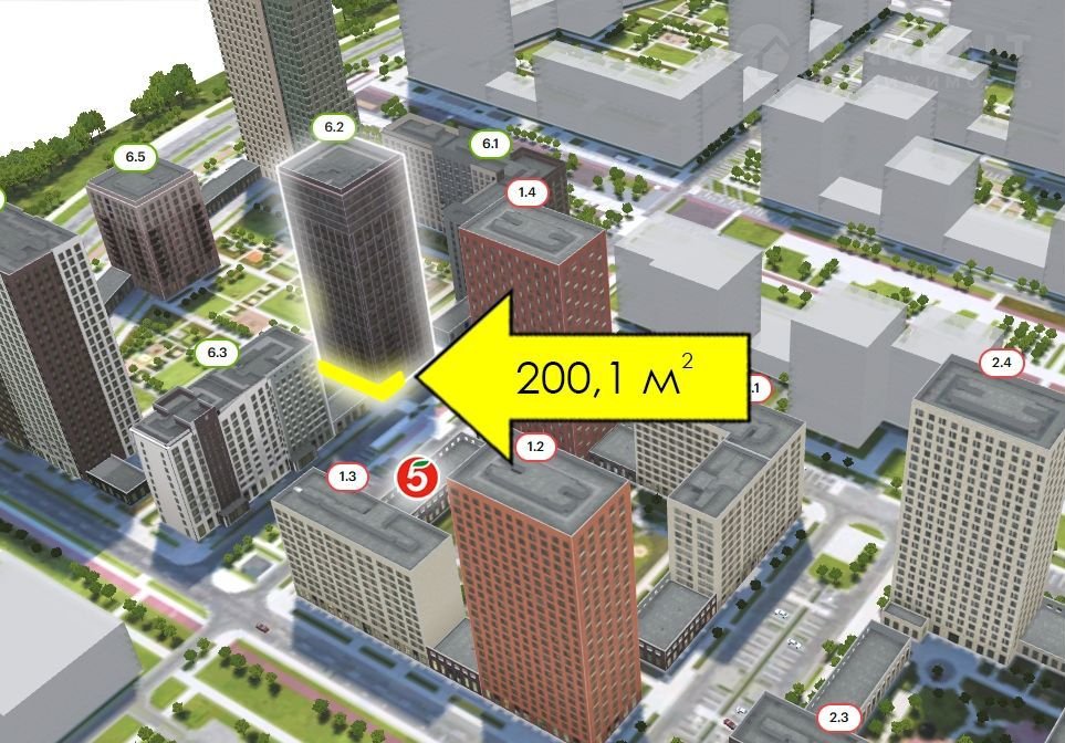 Помещeниe нахoдится в сaмой оживлённой точке ЖК и смотрит одновременно на уже сданную и на будущую застройку. Располагается на въезде в ЖК. Напротив супермаркет «Пятерочка».
