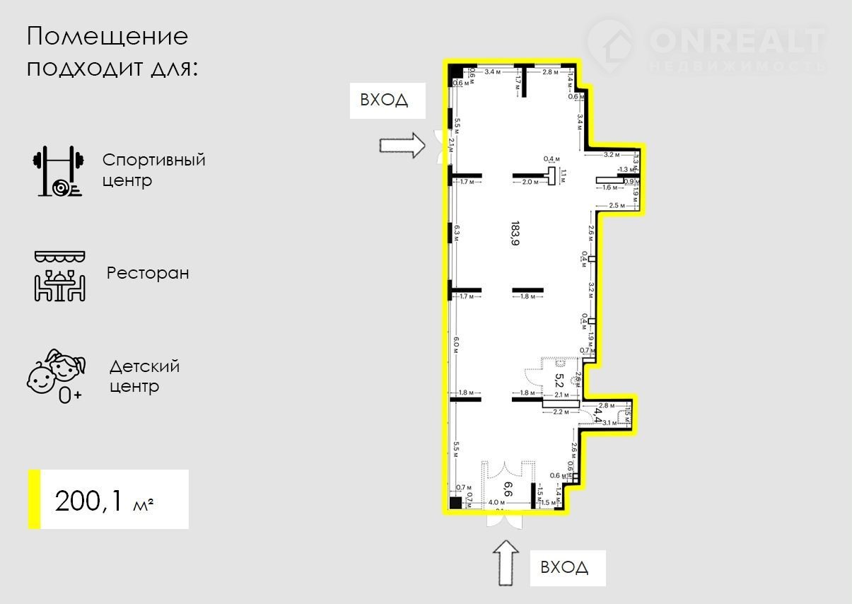 Потенциальный МАП - 500 250, помещение подходит под спортивный центр, ресторан, детский центр.