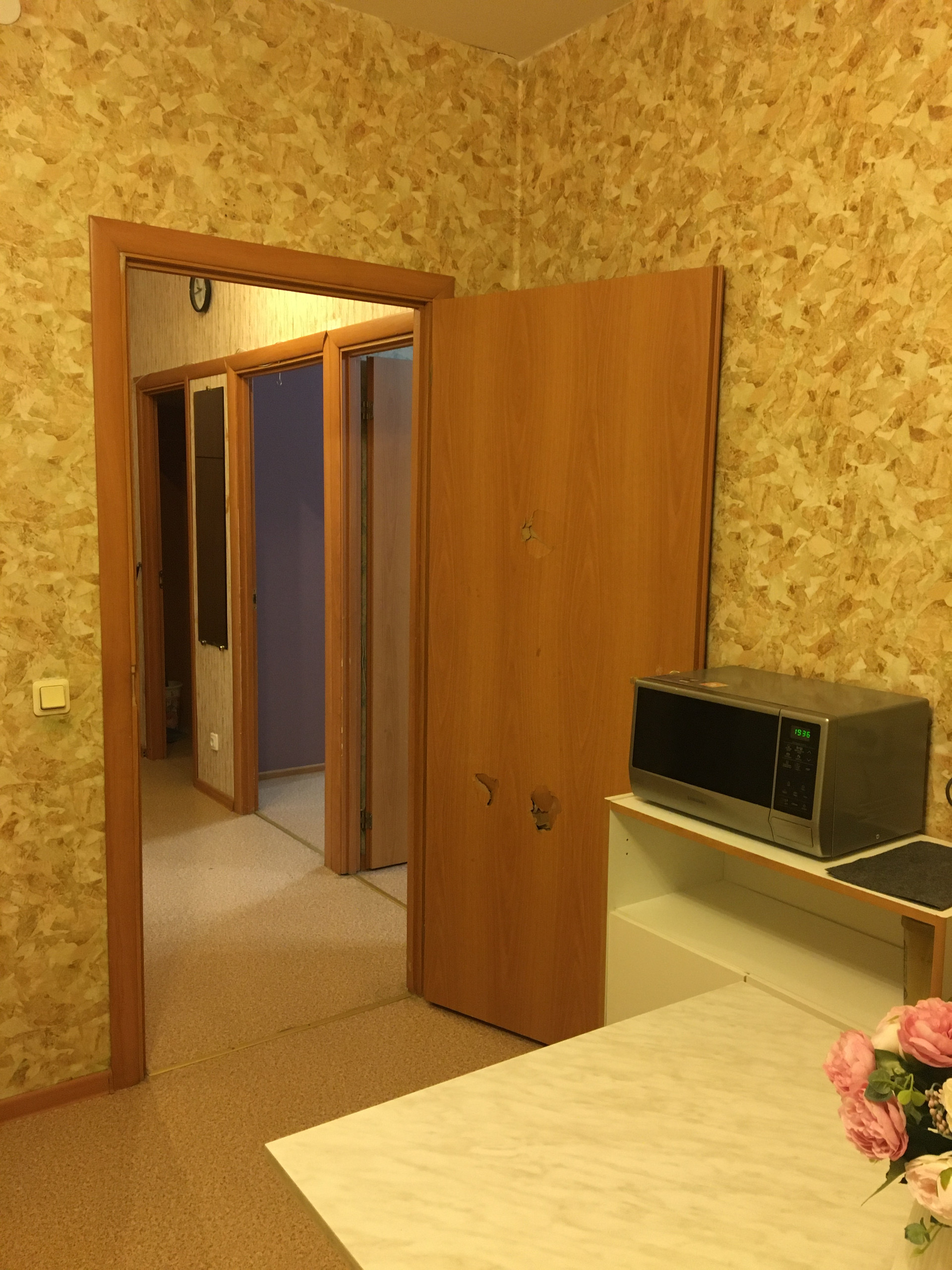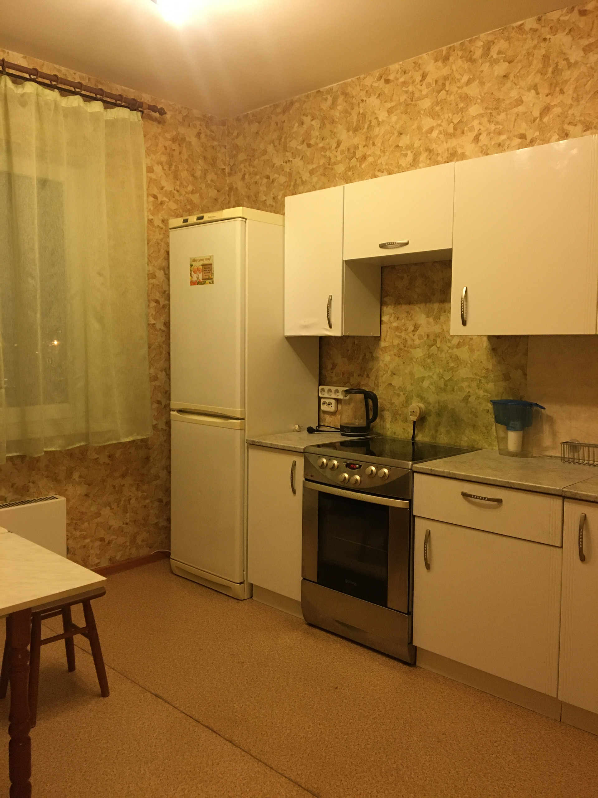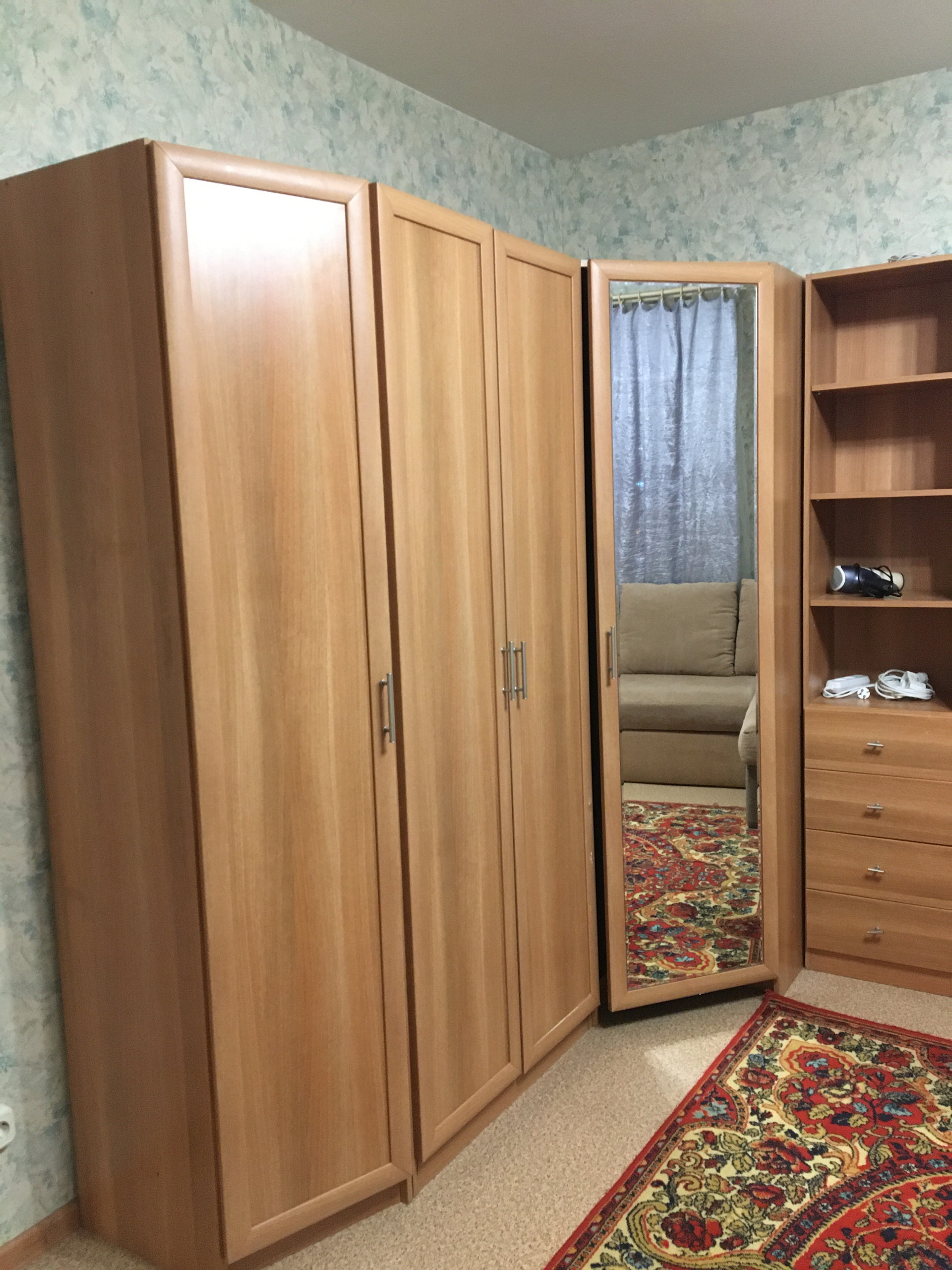 Все для проживания необходимое имеется,маленькая комната пустая,только письменный стол и кресло.Животные обсуждаются.