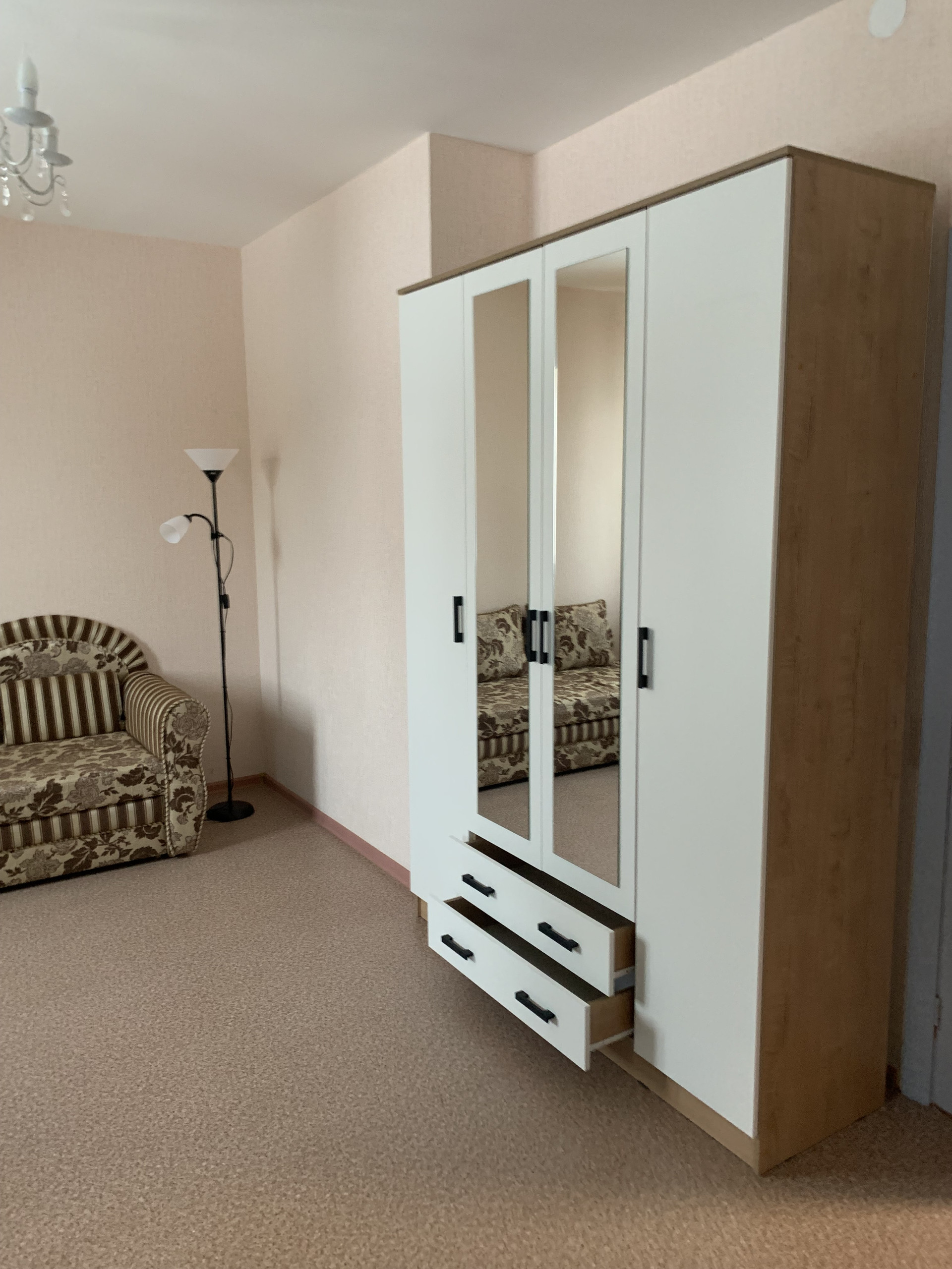 Новая мебель. Балкон. Дом расположен в двух минутах ходьбы от взрослой  поликлиники, остановка общественного транспорта рядом с домом, до МЦД3 - 15 минут пешком.