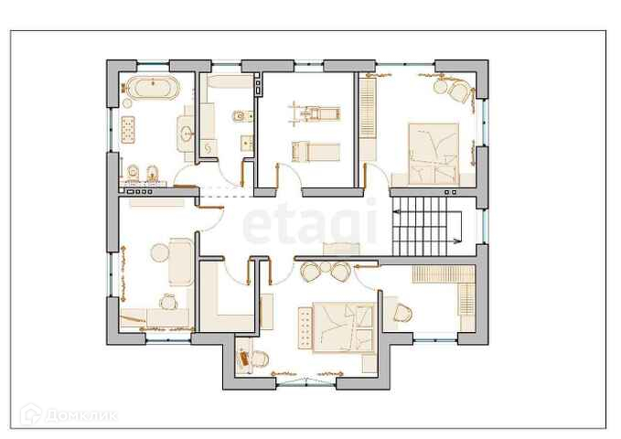 2-й Этаж : 2 спальни,кабинет,спортзал, ванная комната с двумя окнами, постирочная, хозяйственная комната.