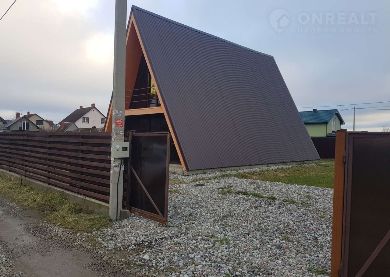Продам интерестный дом в стиле а фрейм, построеный по личному проекту, в котором было учтено не только дизайн дома, но и его функциональность, на первом этаже есть гостевая отдельная комната 12м/2, на втором отдельная просторная спальня 20м/2 с выходом на балкон, при этом остается еще просторная студия на первом этаже 50м/2. Дом удобен, как для личного использования, так и для сдачи в аренду, 6-ти гостям будет вполне комфортно. В Калининграде нет на продаже подобных проектов с отдельными комнатами. Территория огорожена, откатные ворота, разводка света, воды (скваженна 86м), сэптик. Стены обшиты вагонкой. Из ремонта, для заселения, только сделать сан узел и пол. Отопление сделано, можно подключить себе на телефон программу запуска обогрева дома. Прямая продажа от собственника.