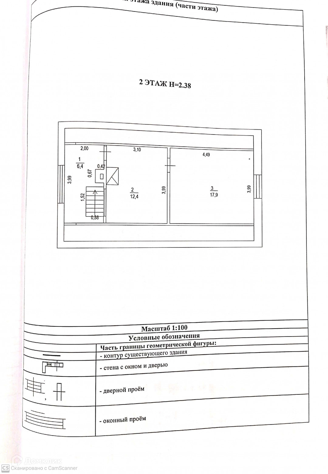 2-й этаж: h – 2.5м., 2 комнаты