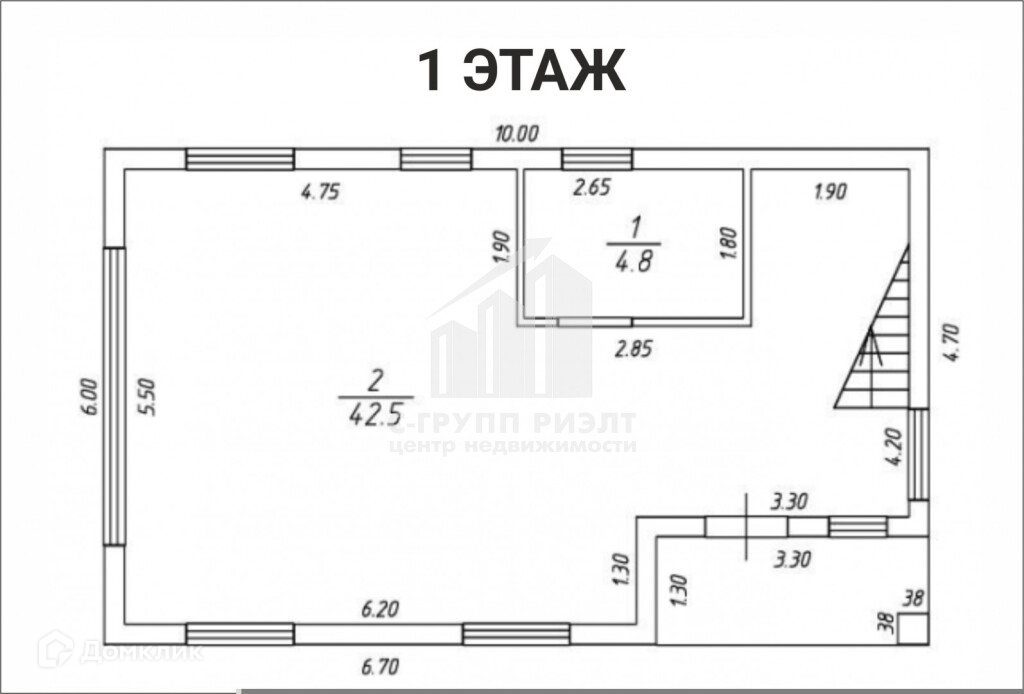 На 2 м этаже - свободная планировка.