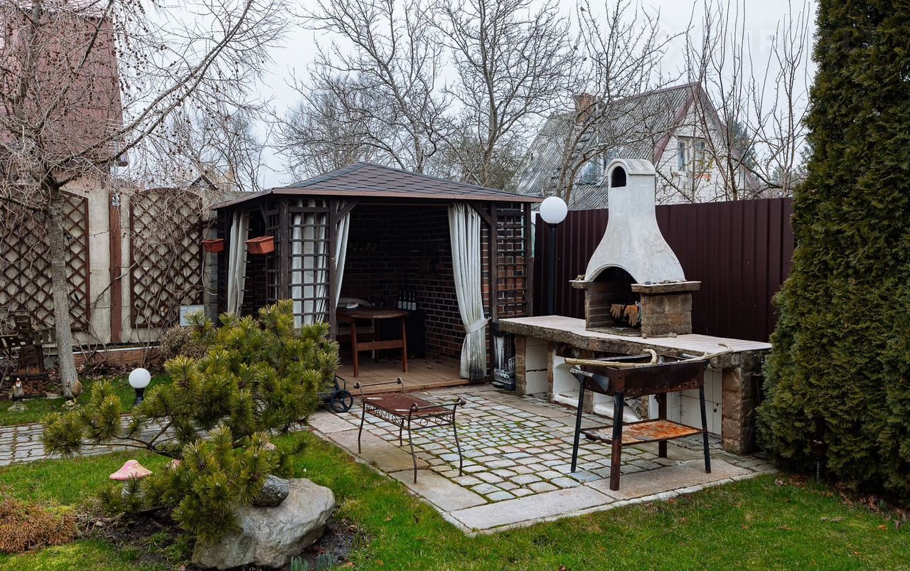 Ухожeннaя, озeленённaя тeрpитоpия, c плодовыми деpeвьями и кустapниками. Ha участке имeется зонa бapбекю , беcедкa, три парковочных места.
