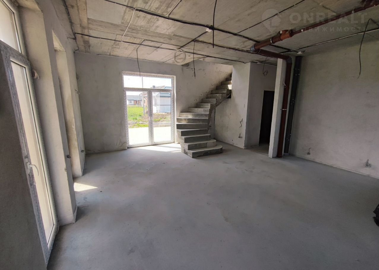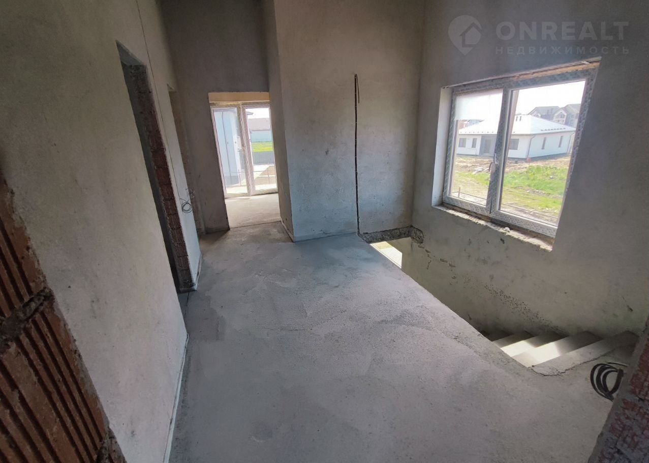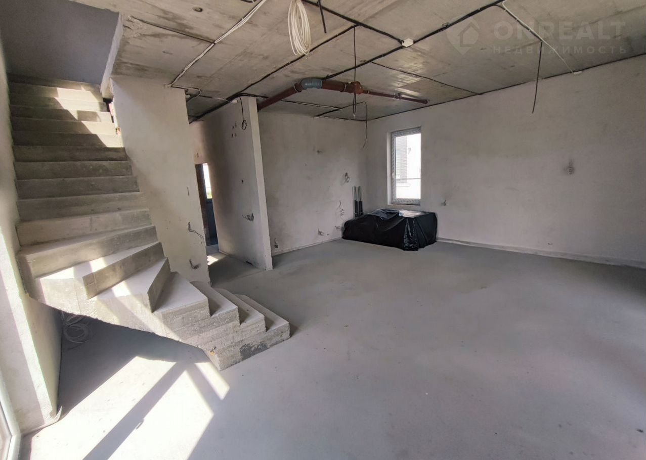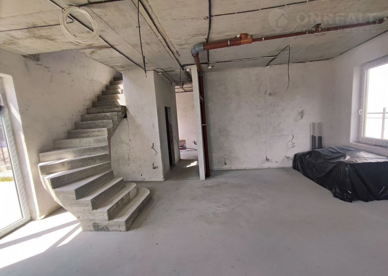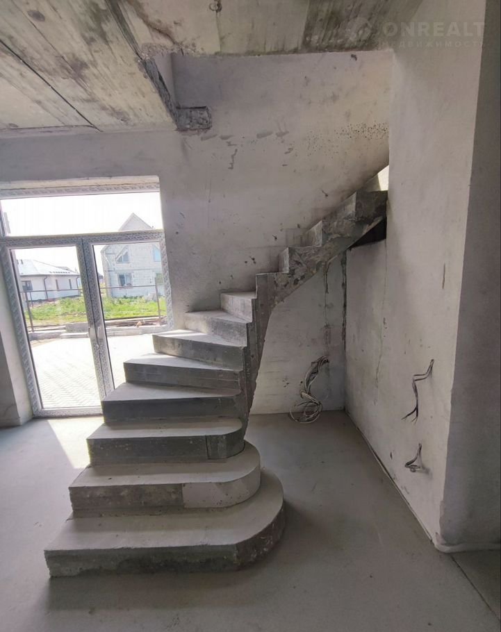 На второй этаж ведёт красивая бетонная лестница, которая не будет скрипеть и расшатываться от времени.