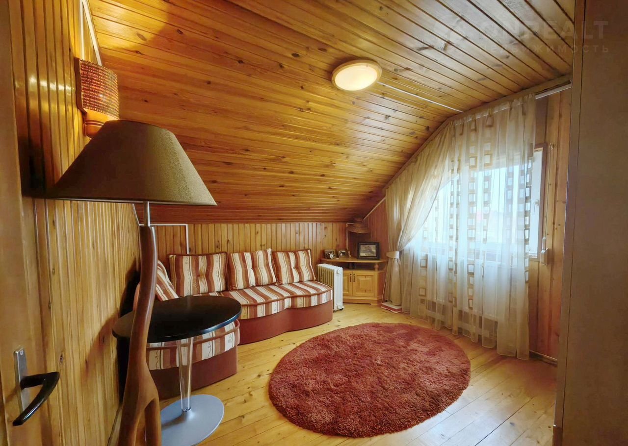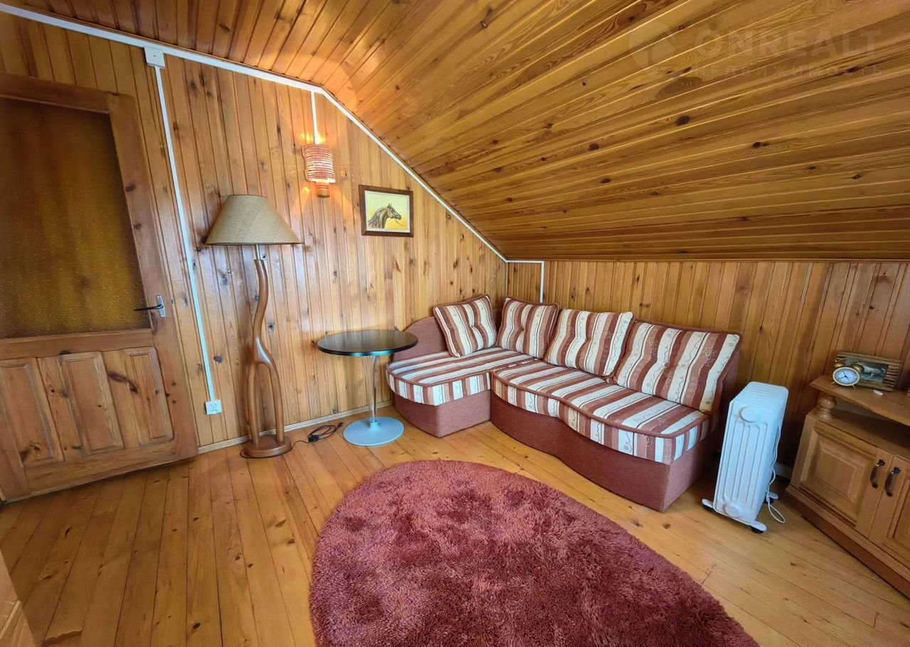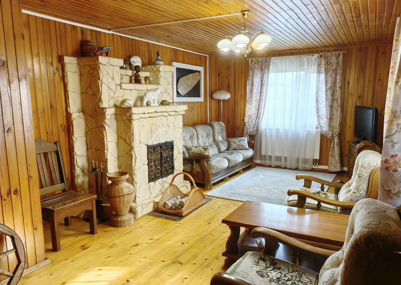 Экологически чистая отделка внутри дома , всё обшито деревом . Встроенная мебель тоже натуральное дерево .