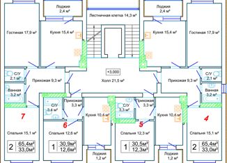 Общая площадь: 65.4 м2