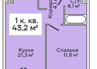 Общая площадь: 43.2 м2