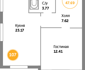 Общая площадь: 47.7 м2