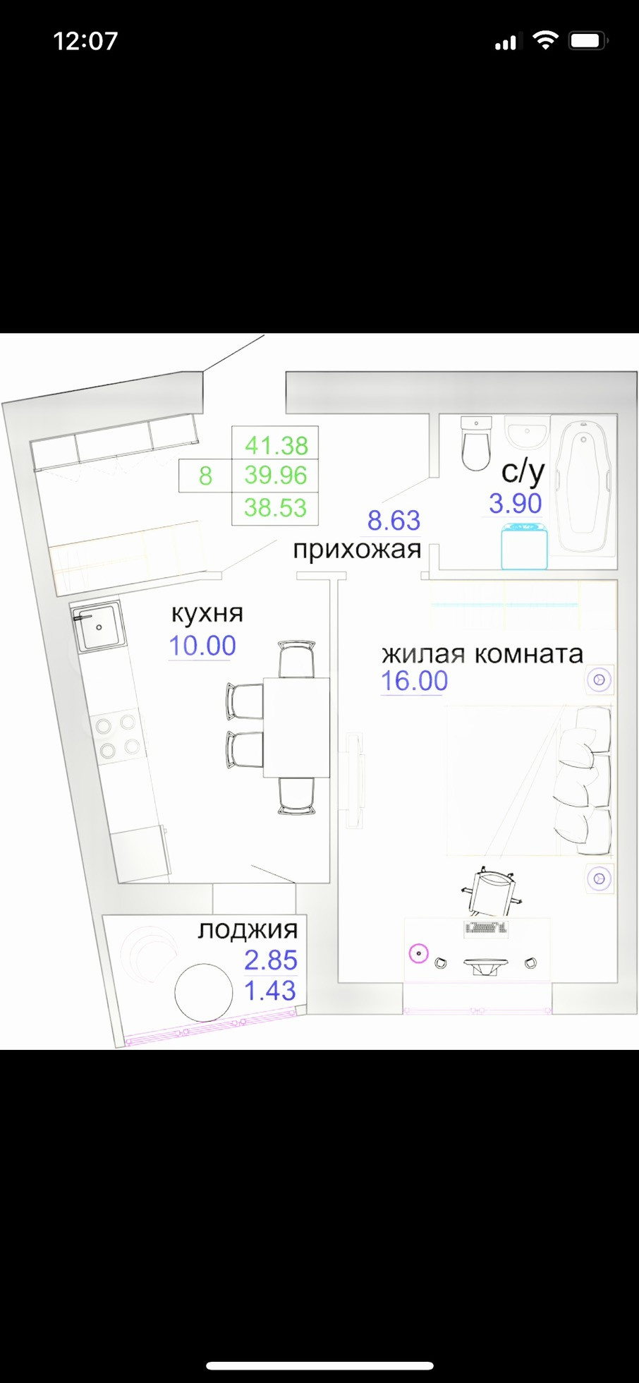 Общая площадь 40.4 м2