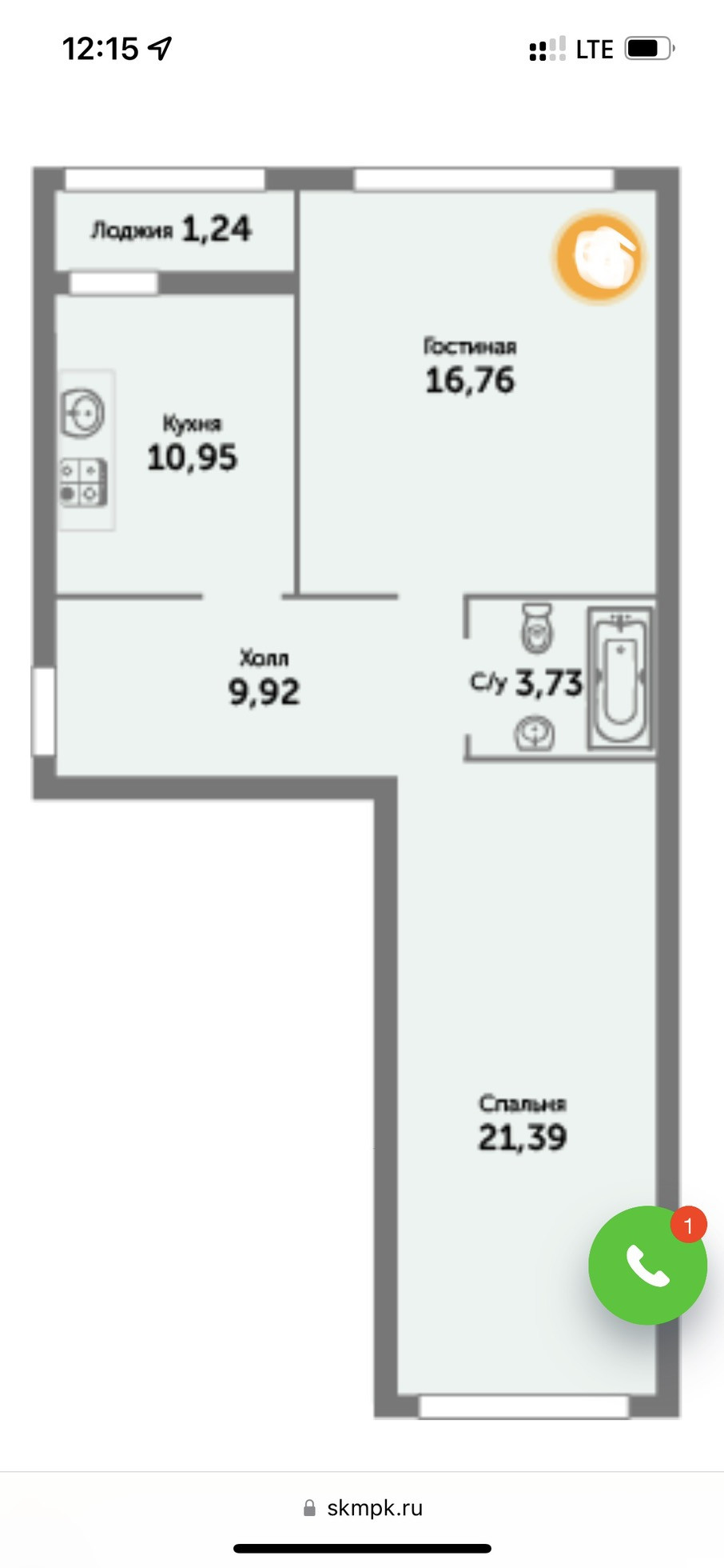 Балкон, лоджия 1 балкон