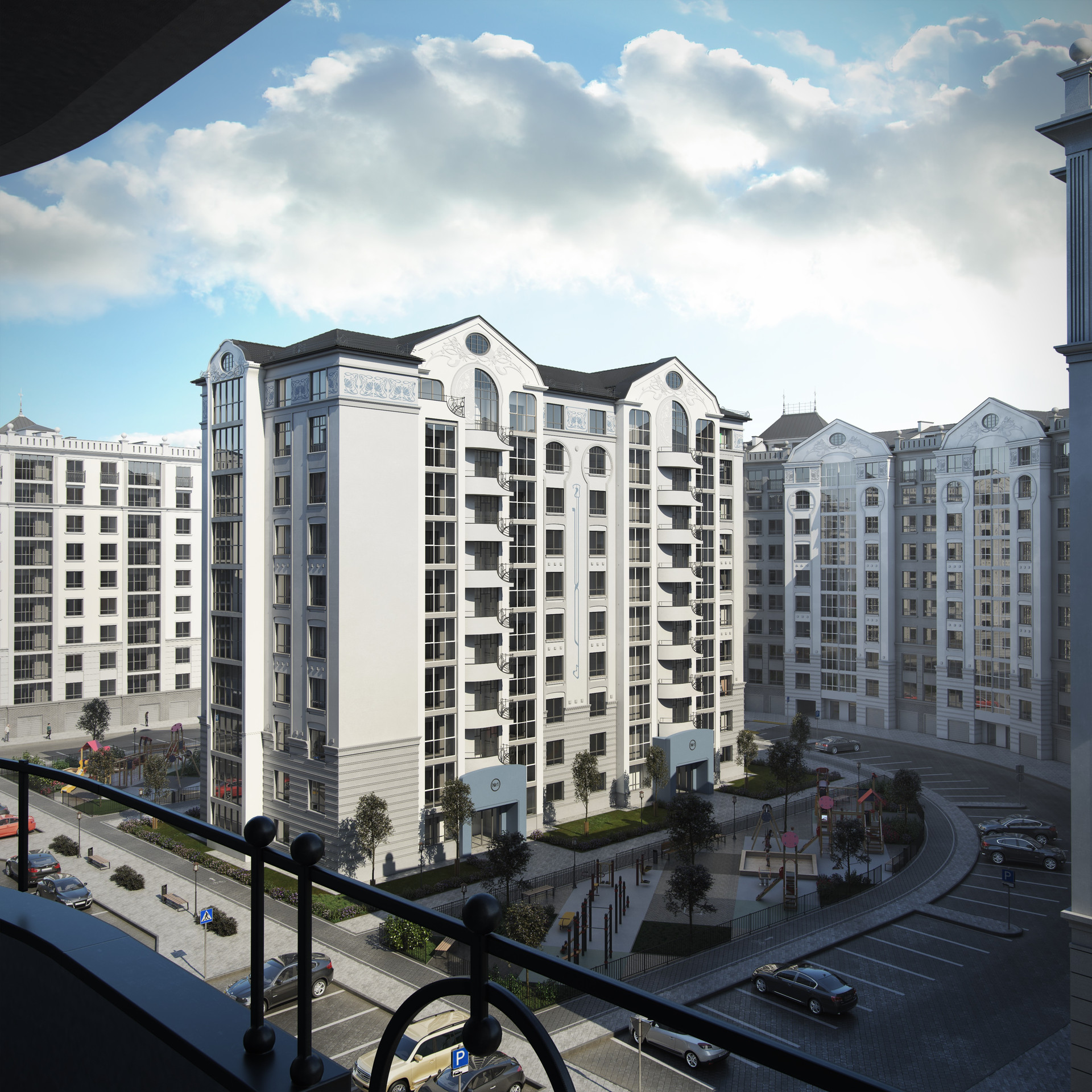 На придомовой территории будут построены современные детские площадки, созданы зоны для отдыха и занятий спортом для взрослых, предусмотрены стоянки для автотранспорта.