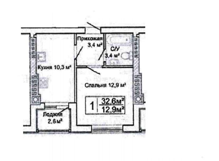 Общая площадь 32.6 м2