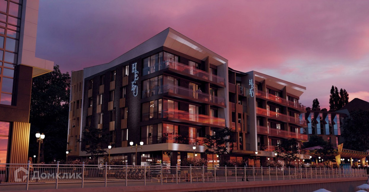 "Небо" имеет очень удачное расположение. Комплекс находится в центре Зеленоградска, и рядом есть не только море, но и парк, также здесь расположены лучшие городские кафе и рестораны.