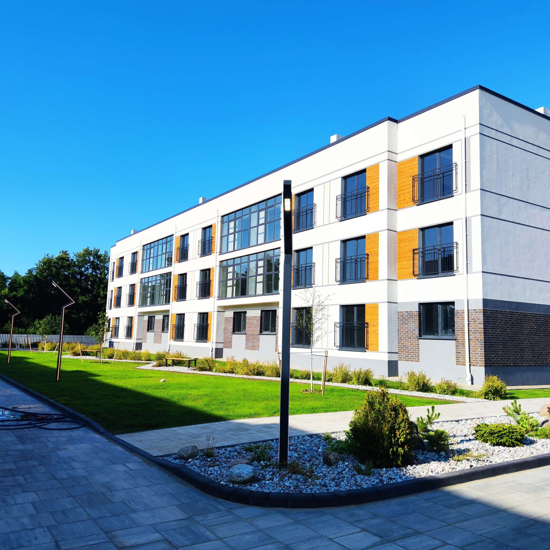 Комплекс «Сосновка-Лазурный» возводится по европейской технологии из усиленного блока. Стены отличаются высокой теплоизоляцией и обеспечивают дополнительное энергосбережение. Уникальные дизайнерские современные решения – комбинация клинкера, акриловой штукатурки и дерева. Автономное индивидуальное отопление, - двухконтурные котлы производителя NAVIEN. Неотъемлемое преимущество- малоэтажность, а также отдельный вход в квартиры первого и второго этажа. Малогабаритные квартиры-студии и одно- двух- комнатные квартиры с панорамными окнами и видом на Балтийские обворожительные закаты.