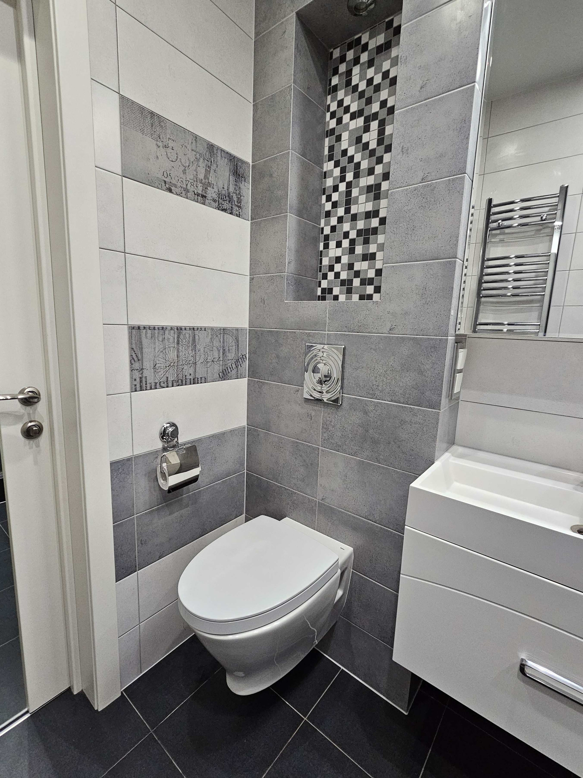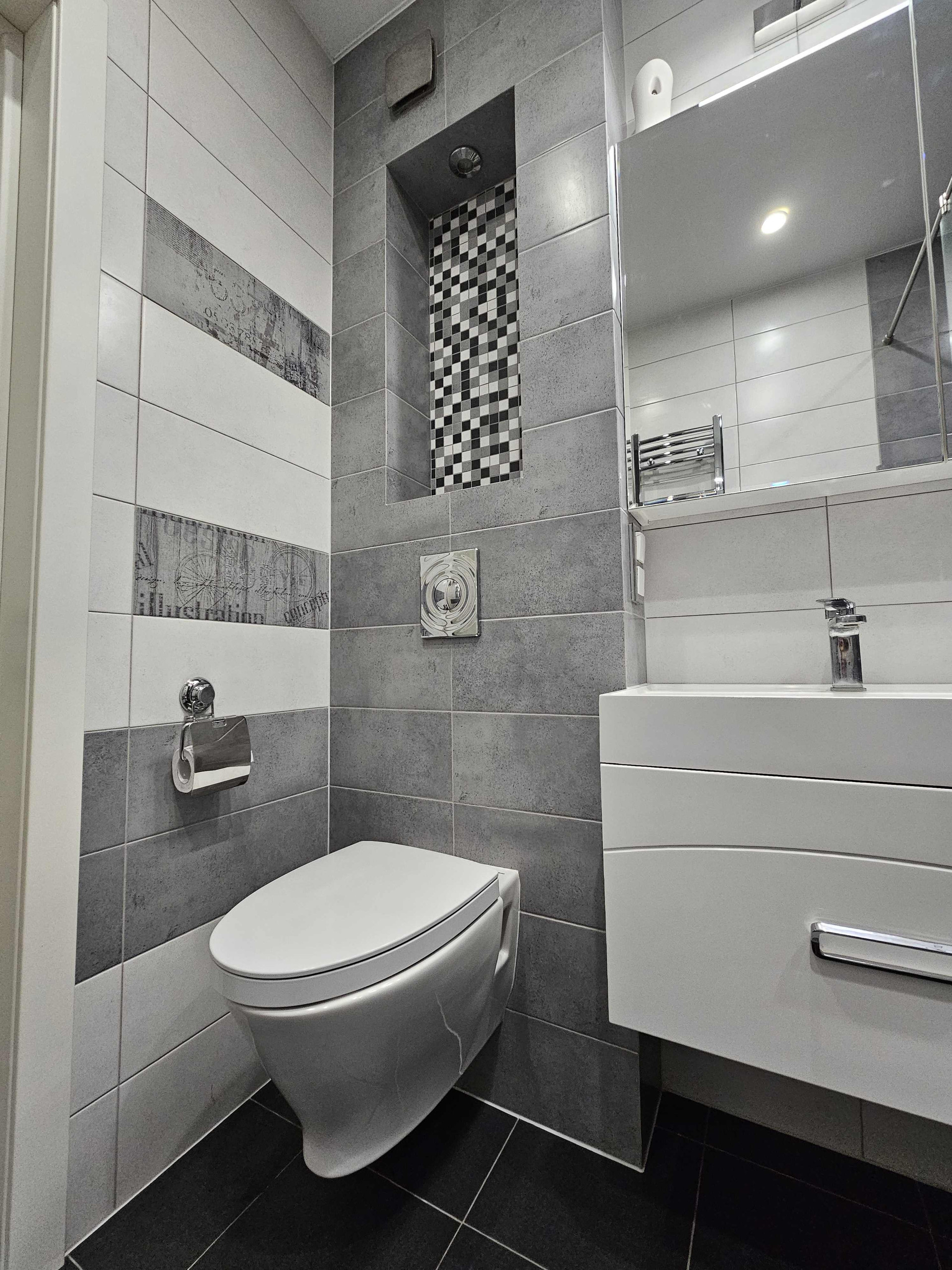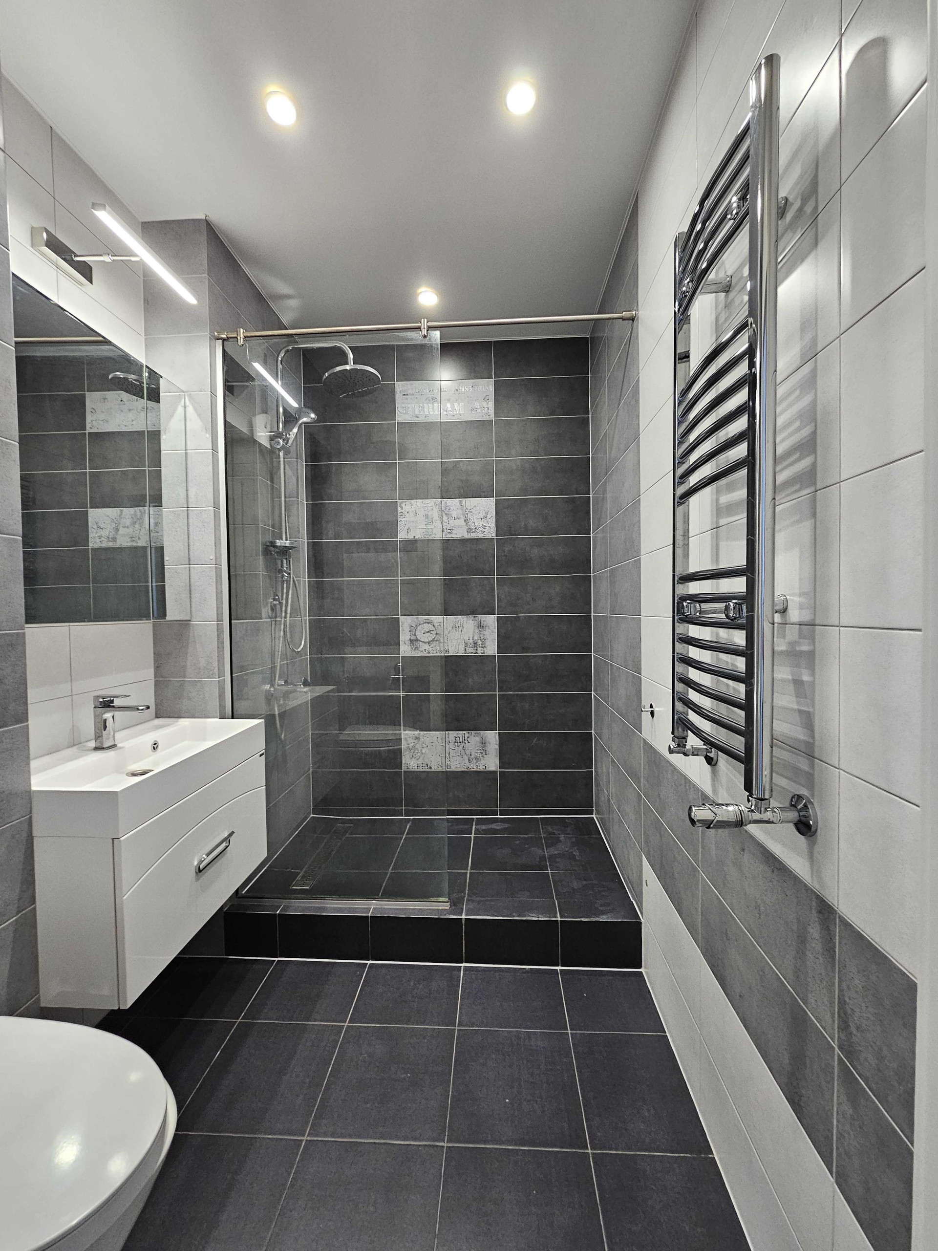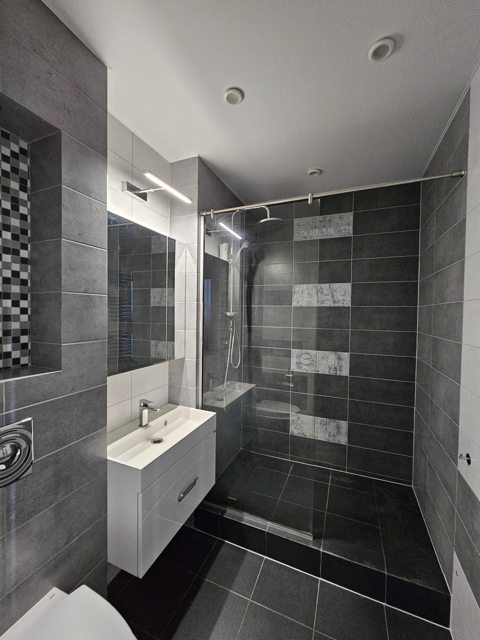 - санузел совмещенный, это настоящее произведение интерьерного искусства: элегантная душевая кабина с тропическим душем, инсталляция, зеркальные поверхности с подсветкой, ниши для полезных и красивых аксессуаров