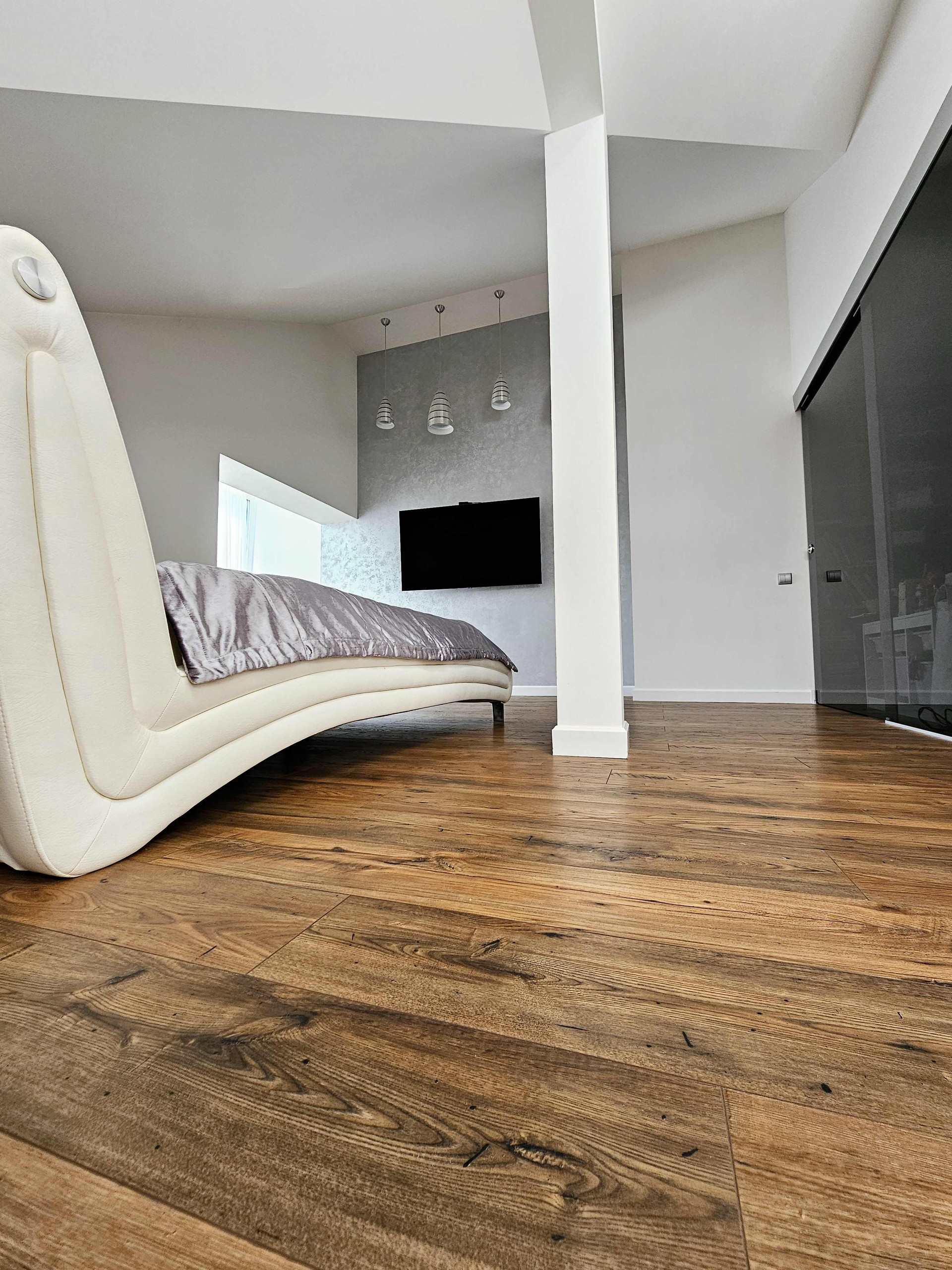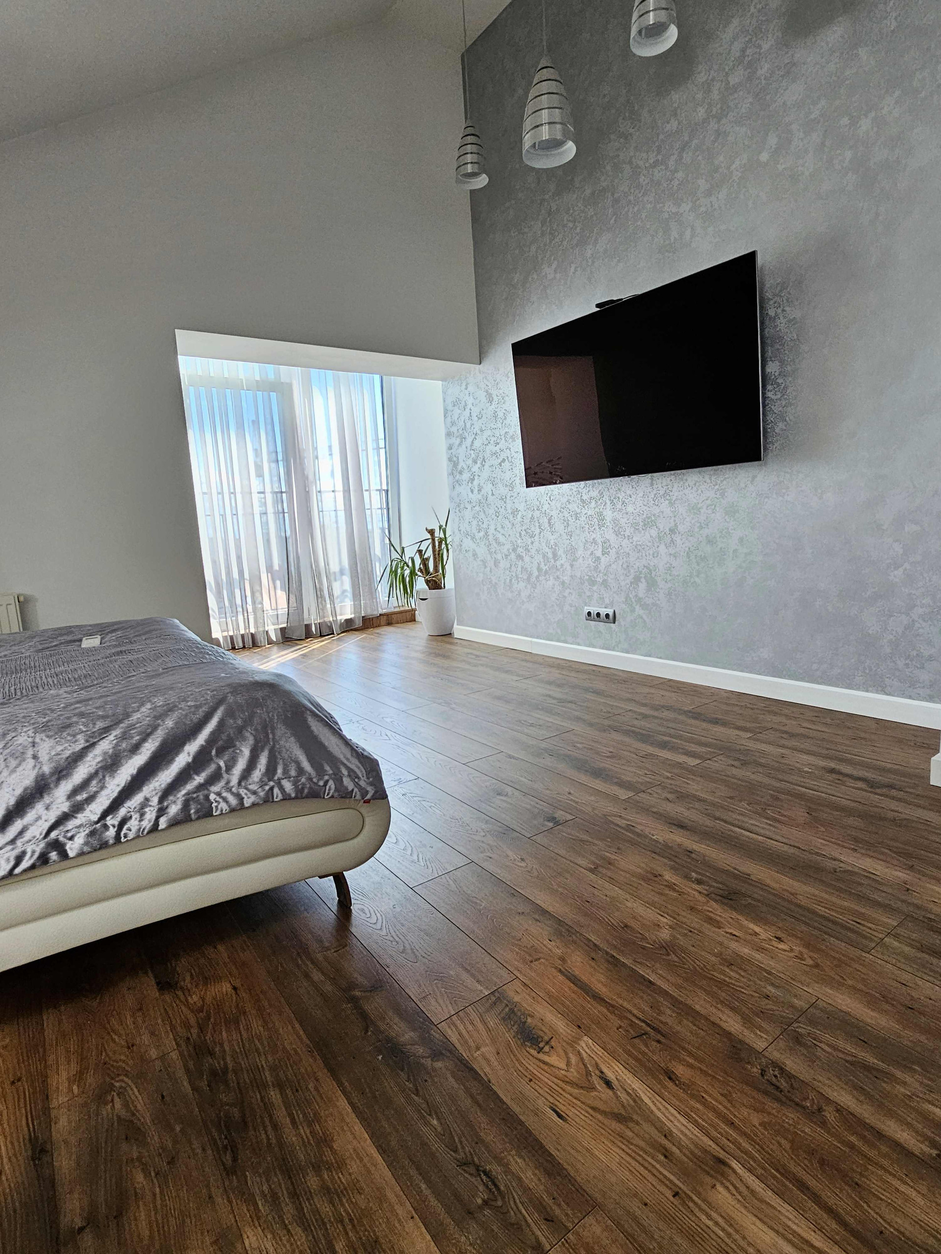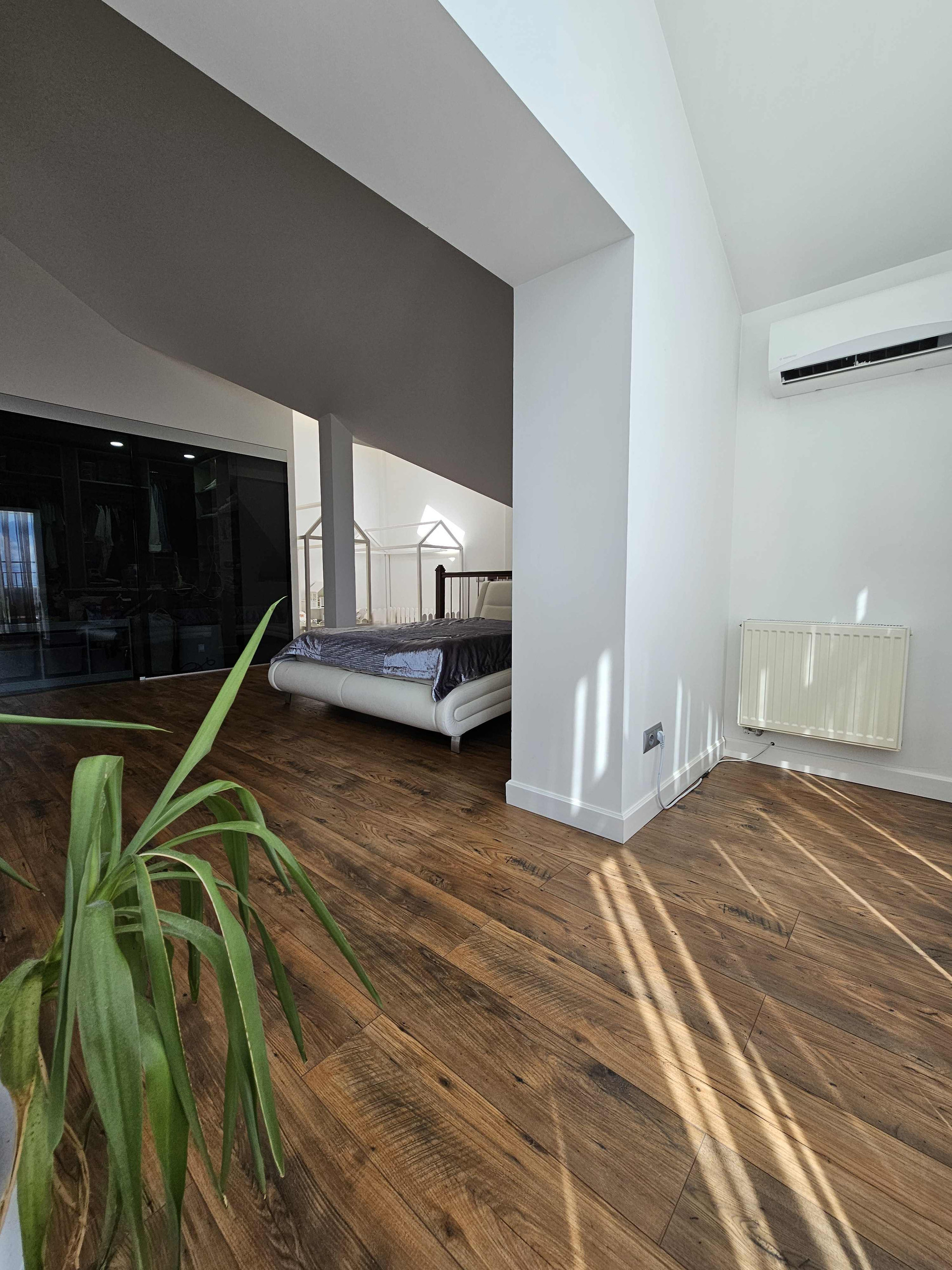 Мы поднимаемся по роскошной лестнице, словно парим над полом, и попадаем в райский уголок спальни. Это 32 м² уюта, света, воздуха