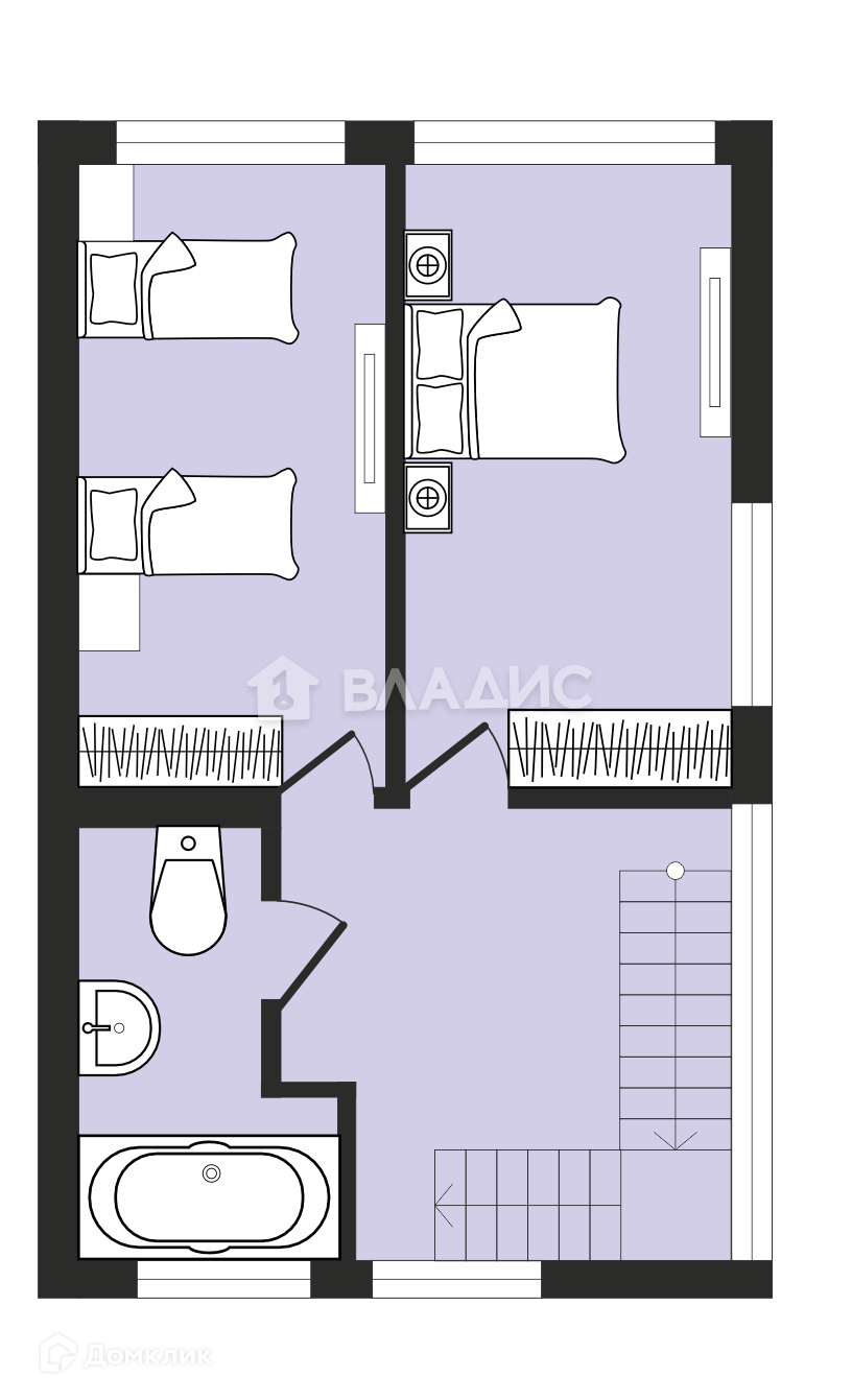 Второй этаж - холл, две спальни по 16 м2 с выходом на балкон, санузел 8м2.