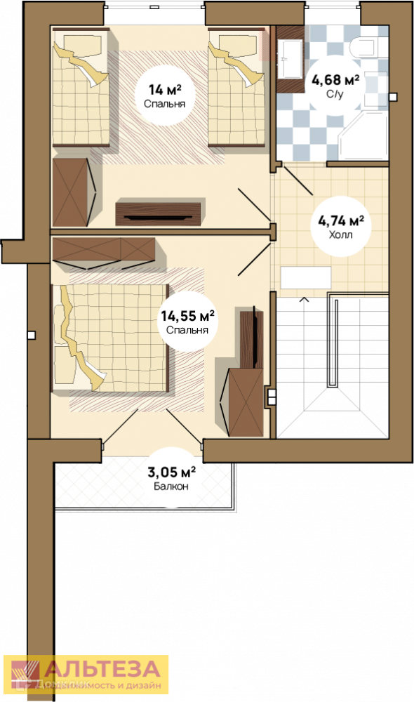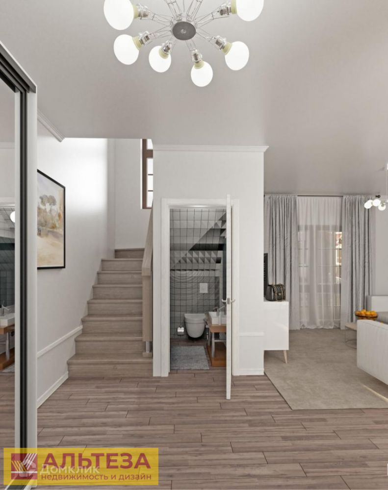 Двери — железные качественные, окна — панорамные, алюминиевый стеклопакет. Конструкция — монолит, заполнение стен – газобетонный блок. Планировка: 1-ый этаж прихожая, санузел, кухня-гостиная с входом на террасу. 2-ой этаж две спальни, санузел, балкон.