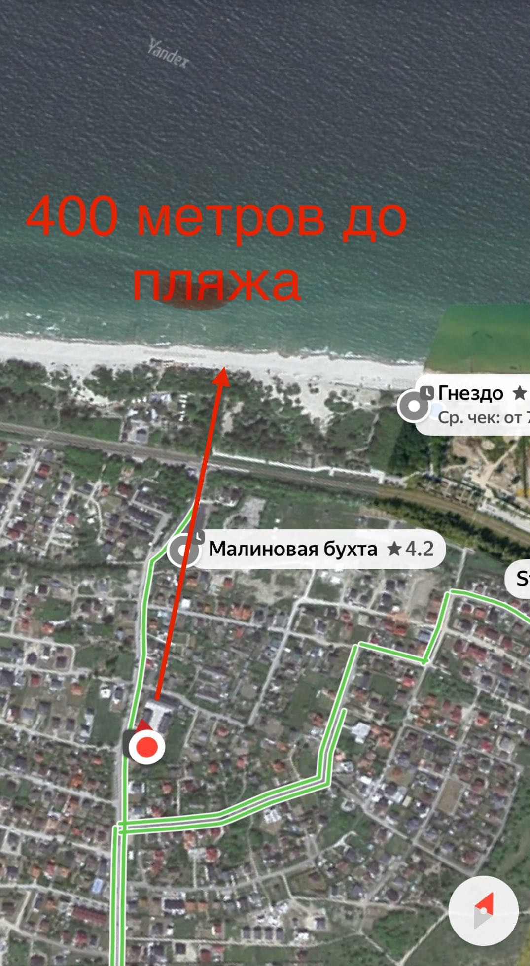 До моря 400 метров (пляж Малиновка, западный пляж), за забором магазин, большая территория.