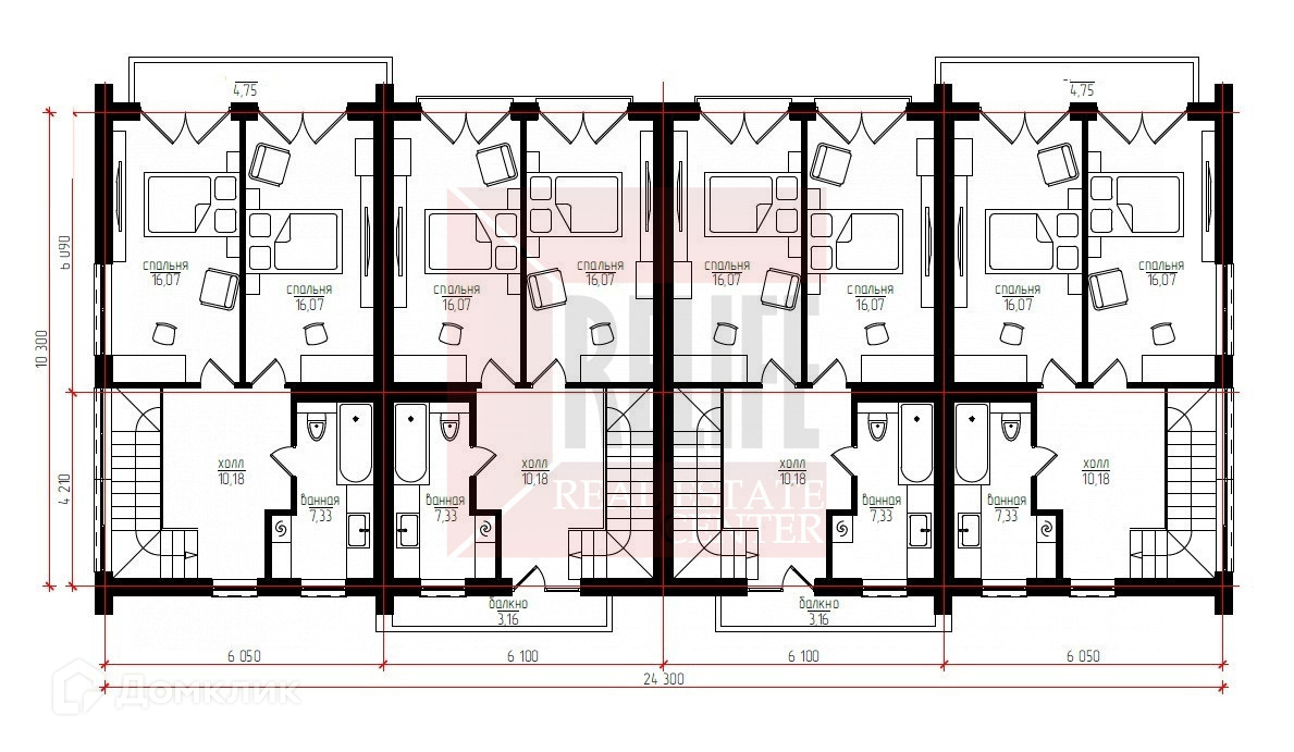 - 2 этаж: две спальни по 16.07 кв.м. с выходом на просторный балкон, ванная комната.