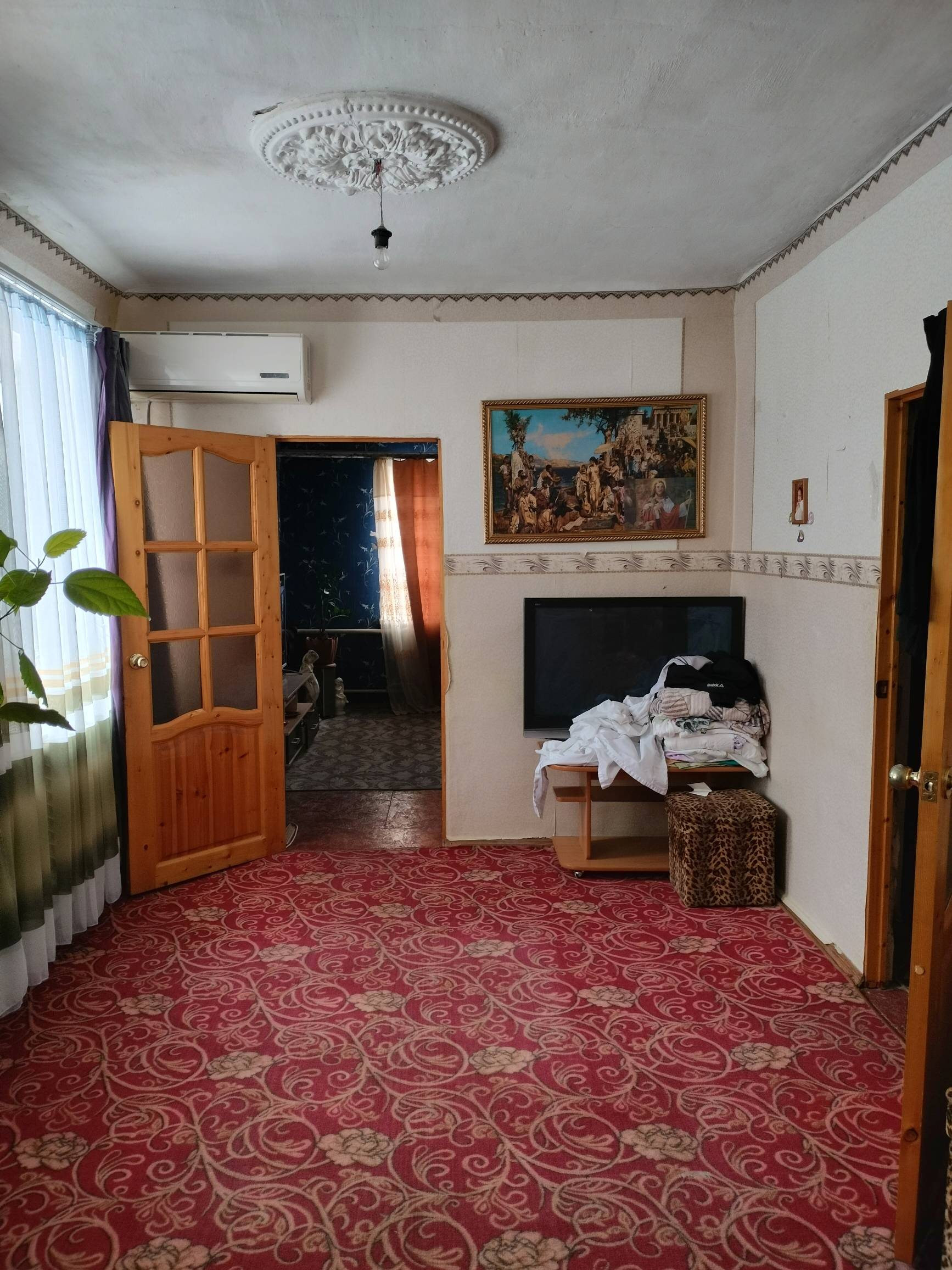 Продаётся дом на земле на два хозяина, туалет и ванная есть в доме, рядом школа, это второй дом от дороги звезд с ул. Садовой рядом магазин Красное белое, по Садовой ходит маршрутка, дому требуется ремонт. Пишите лучше в чате либо можно написать через ват ЦАП, я дам номер собственника,потому как здесь нельзя написать номер телефона