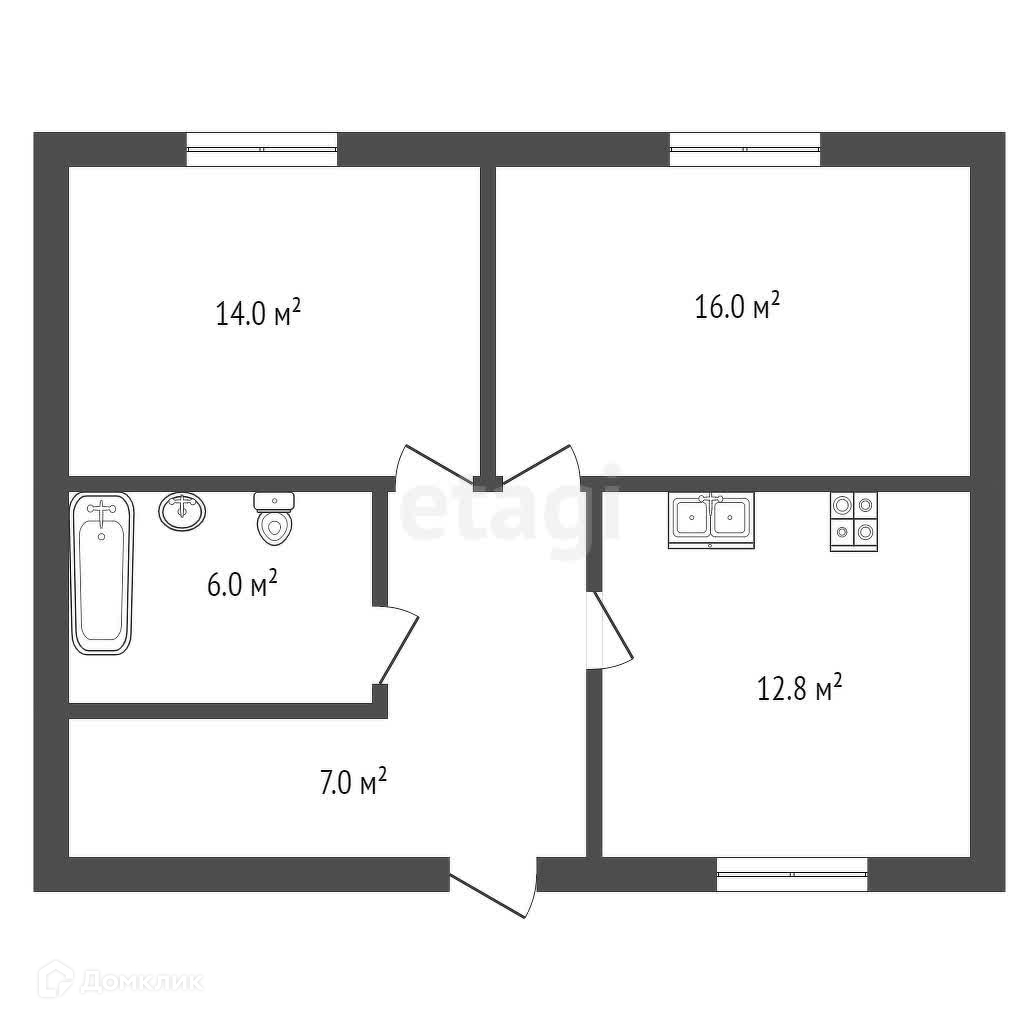 Общая площадь 55.8 м2