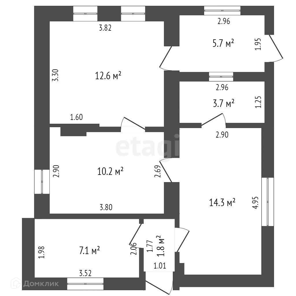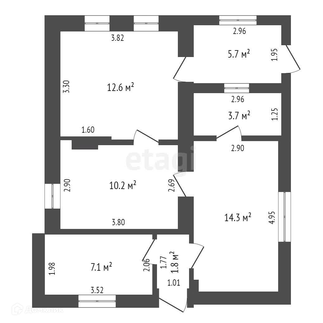 Общая площадь 57.9 м2