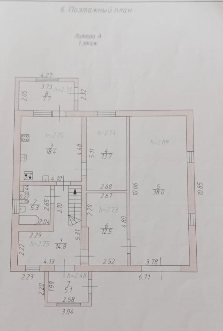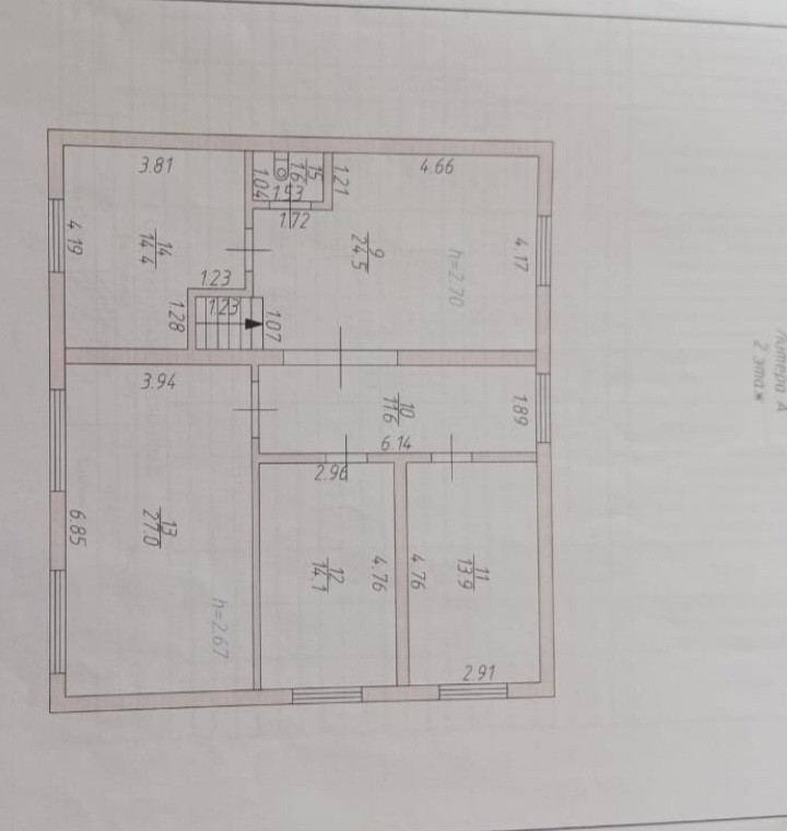 5 комнат на втором этаже: 27 кв.м, 24,5 кв.м, 14,4 кв.м, 14,1 кв.м, 13,9 кв.м.