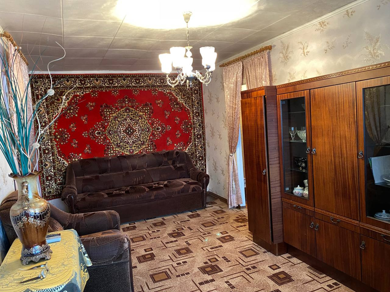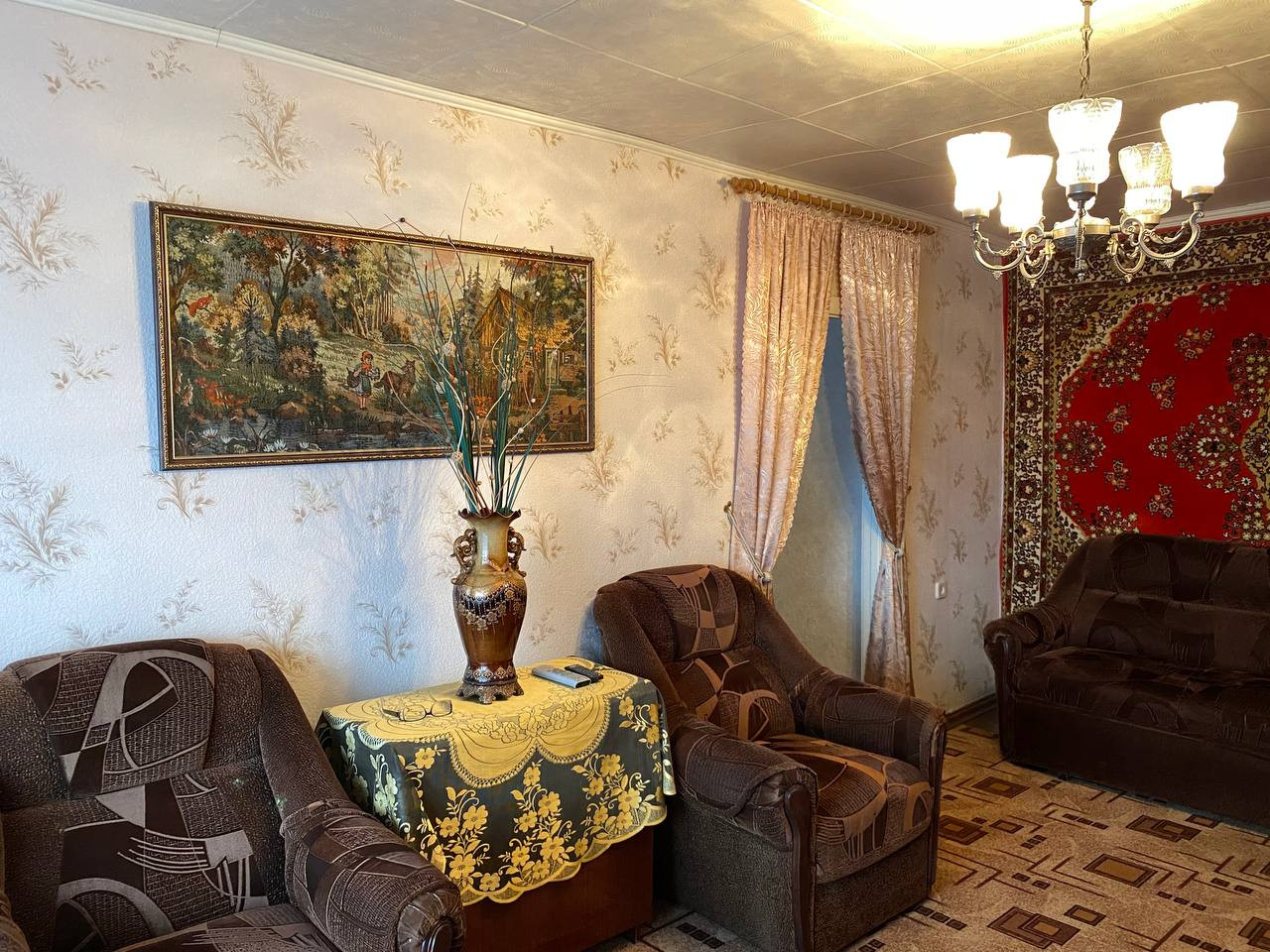 Комнаты смежные, имеется кладовая под гардеробную. Всю мебель, которая на фото, можем оставить. Состояние жилое, но ремонт требуется. Окна пластиковые. Балкон не застеклен. Санузел совмещенный, на кухне газовая колонка, кафель от пола до потолка.