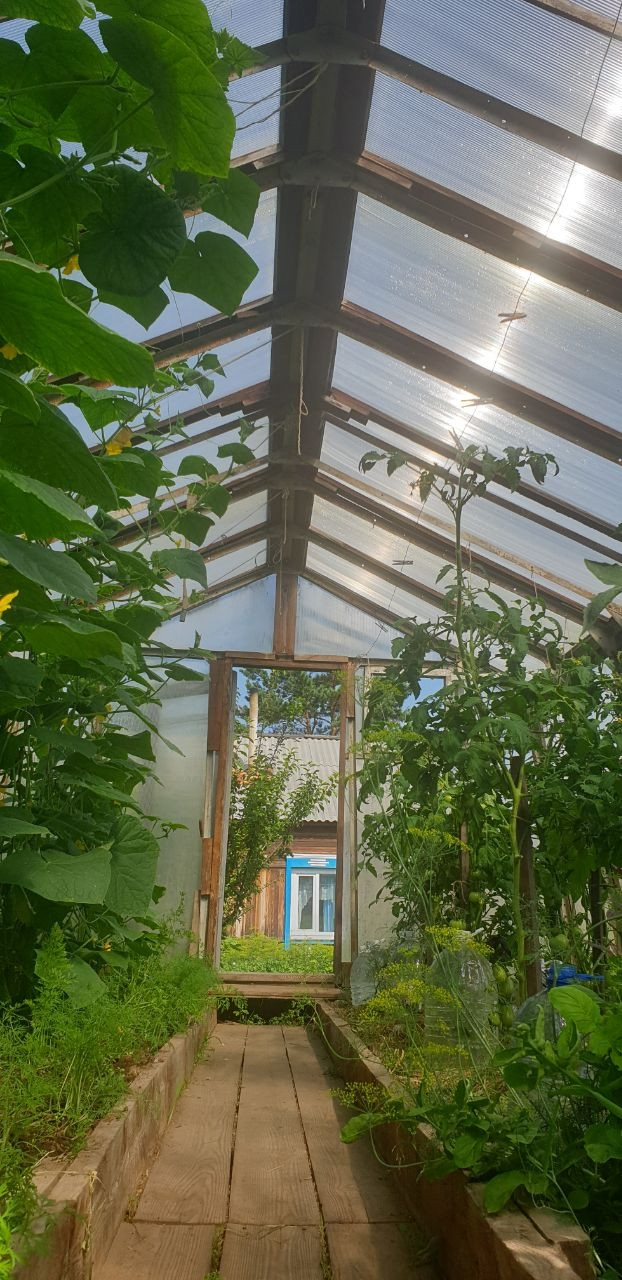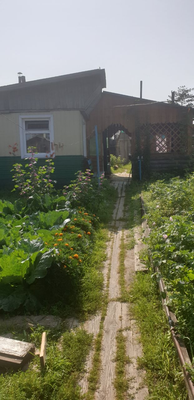 Продается 3х комнатная квартира в 2х квартирном доме площадью 55.2 кв.м + участок 7 соток  с гаражем, баней+комнатой отдыха и верандой (печка, мангал, стол),теплицей, обустроенными парниками, туалетом, хоз постройками с клетками под кроликов и кур, дровник с запасом дров. Отопление в доме печное+электрическое, электробойлер, 2 погреба, скважина в доме с насосной станцией. Электроплита, душевая, посудомоечная, стиральная машины. На участке посадки садовых и овощных культур. Участок высокий, с лёгким, ухоженным, плодородным грунтом.