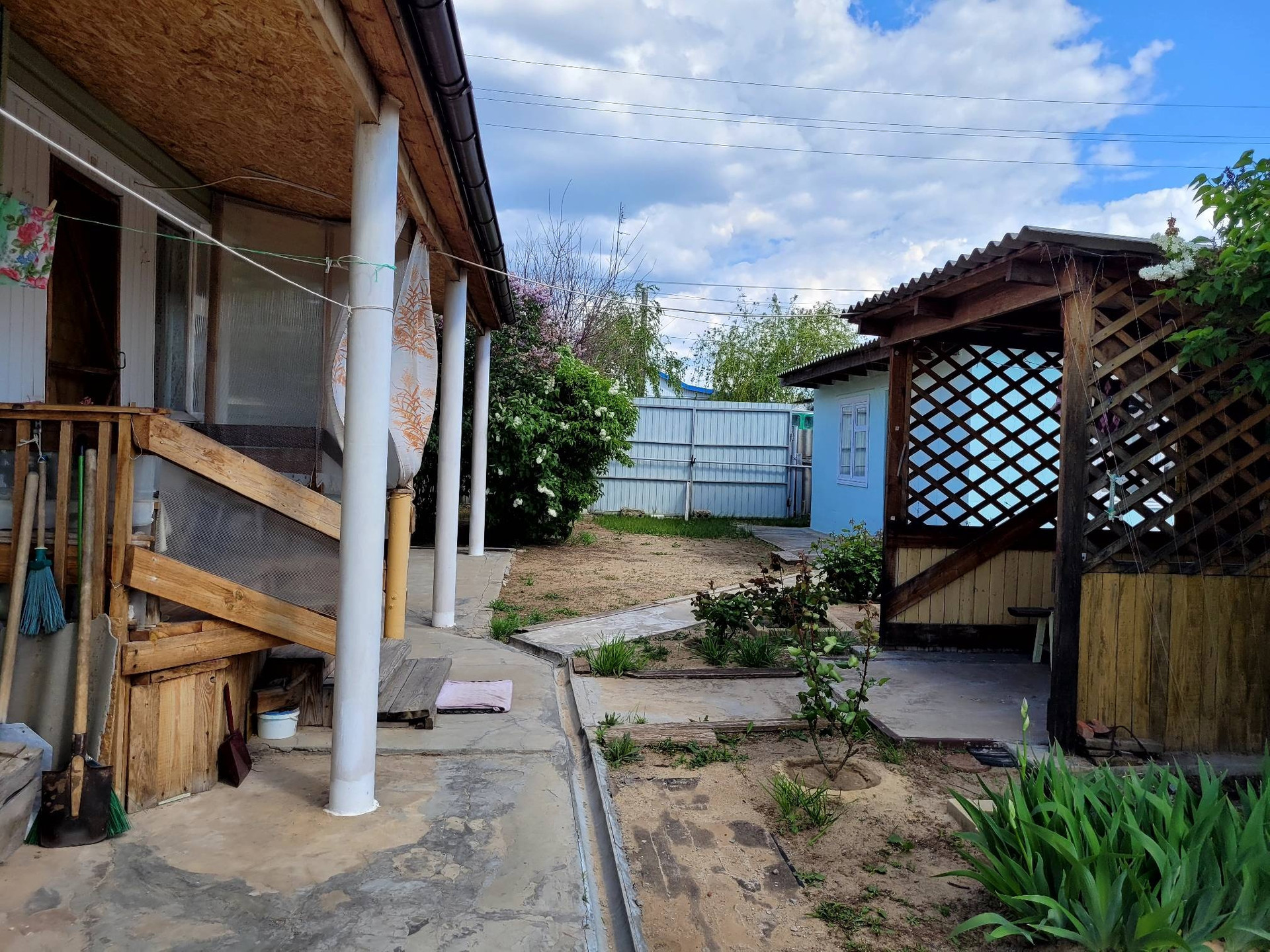 В доме 4 комнаты, кухня, кладовка, с/узел, газовый кател, вода централизована. На участке летняя кухня, беседка, теплица, сарайные постройки. Рядом школа, церковь.