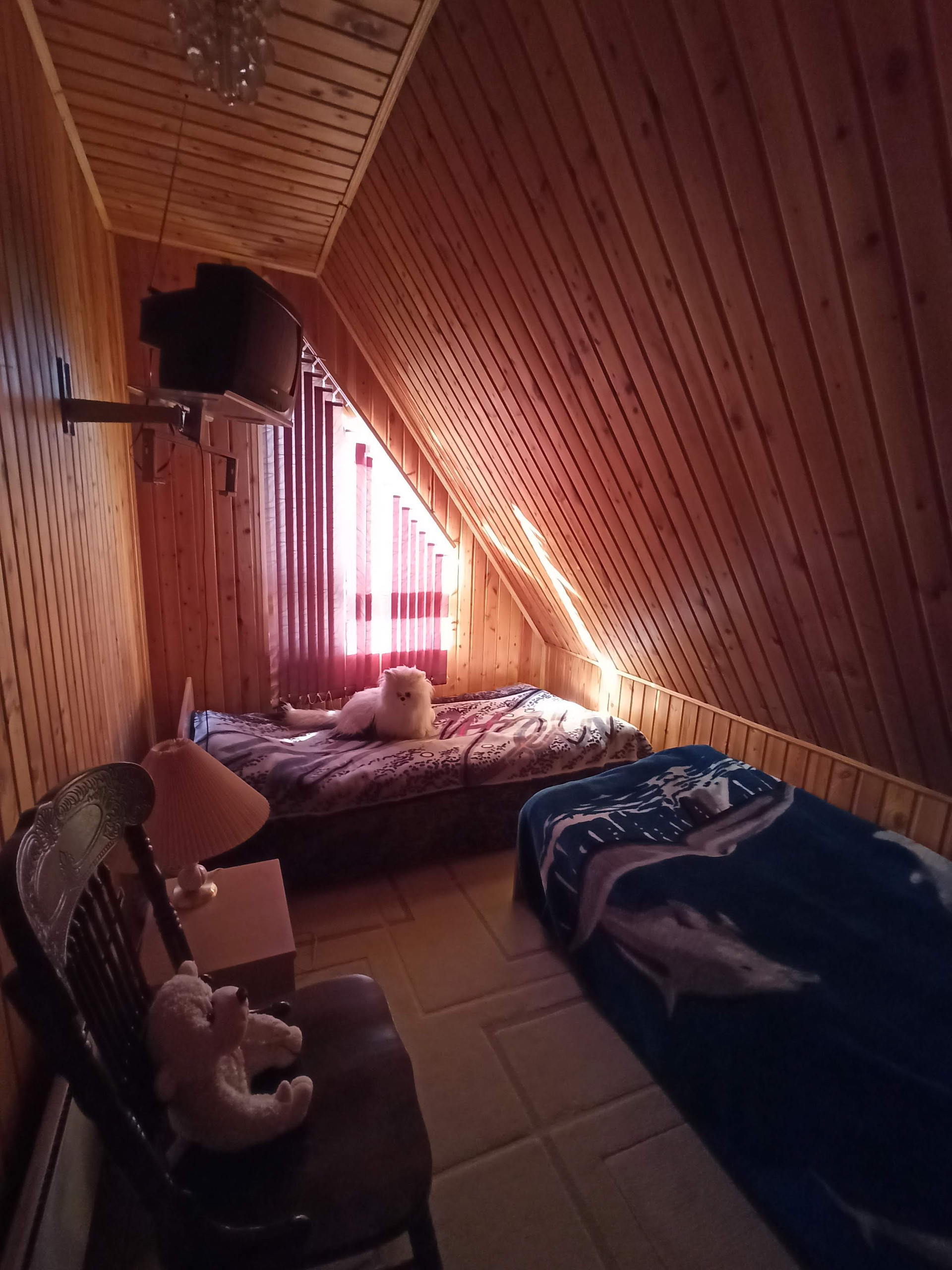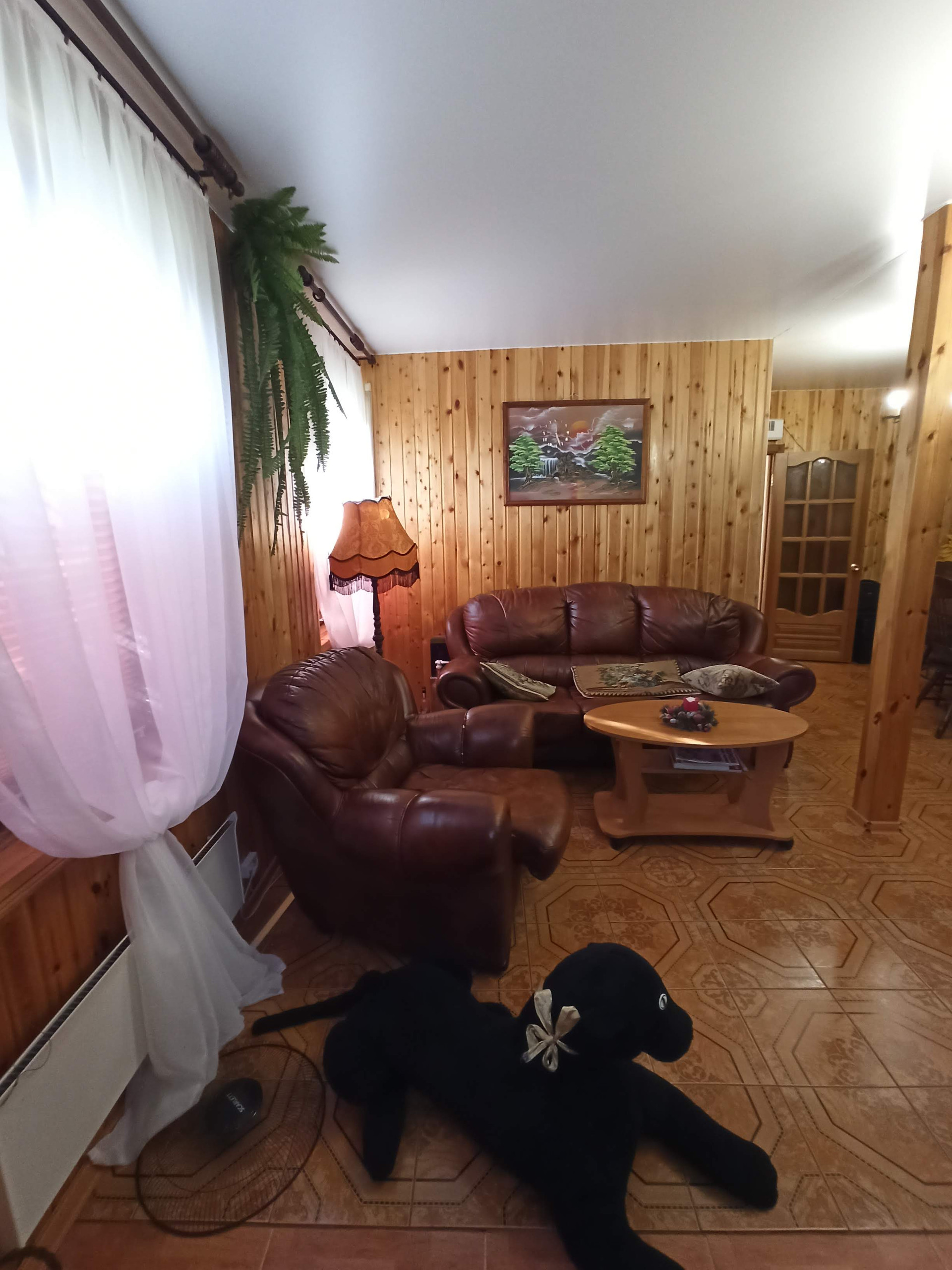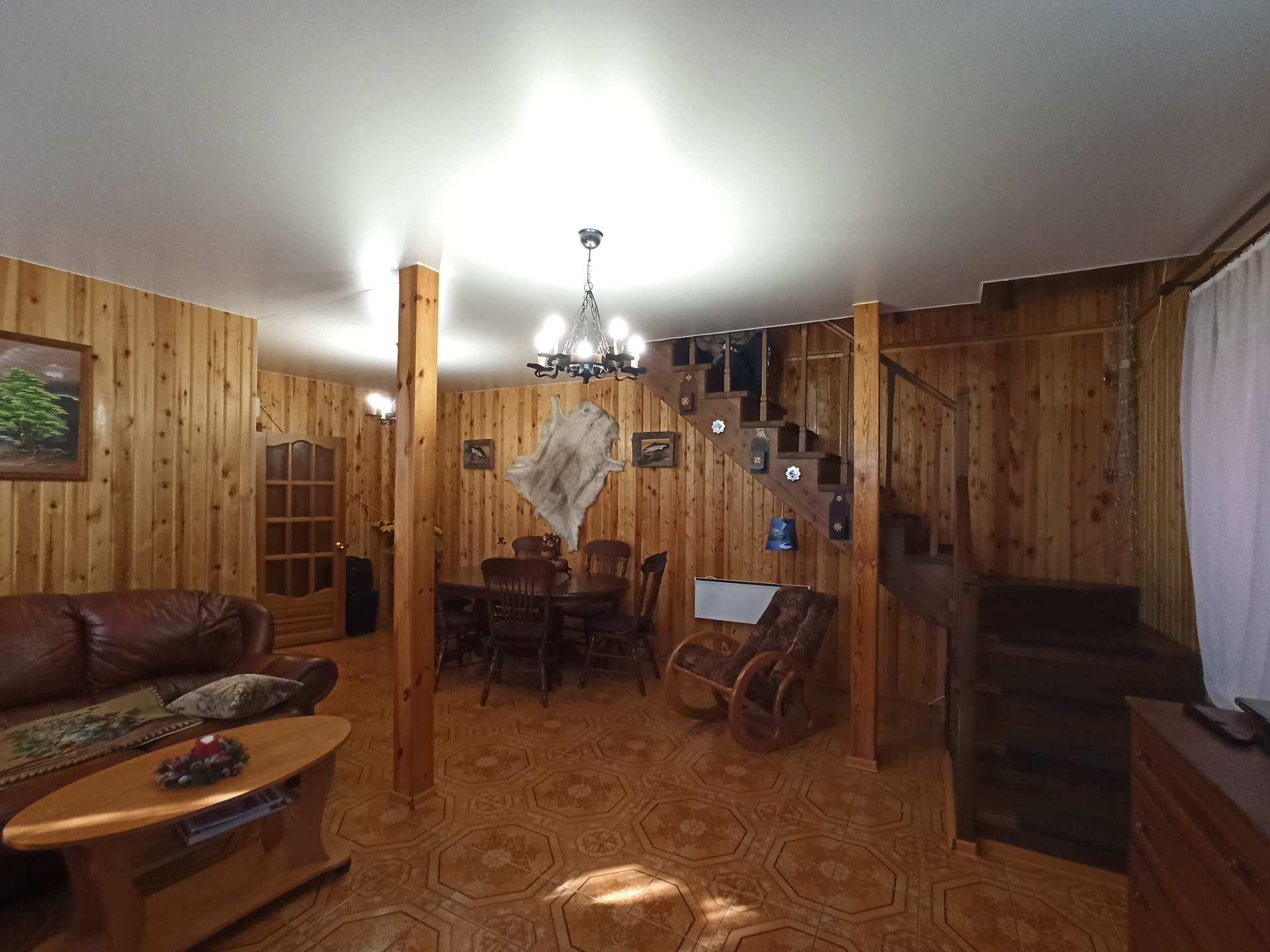 Кожаная мягкая мебель, коричневого цвета. Всего в доме 8 спальных мест.