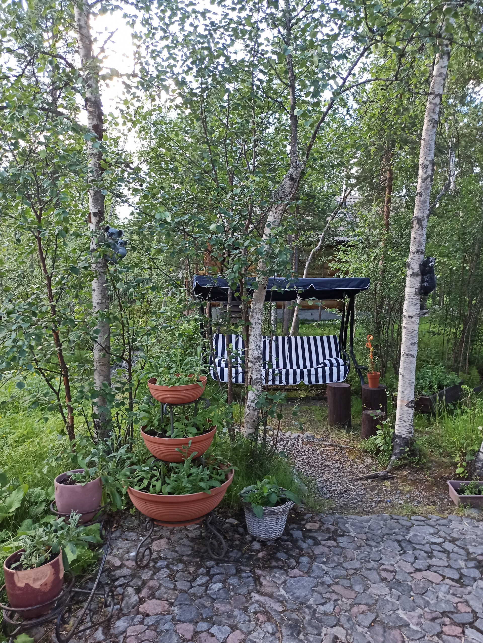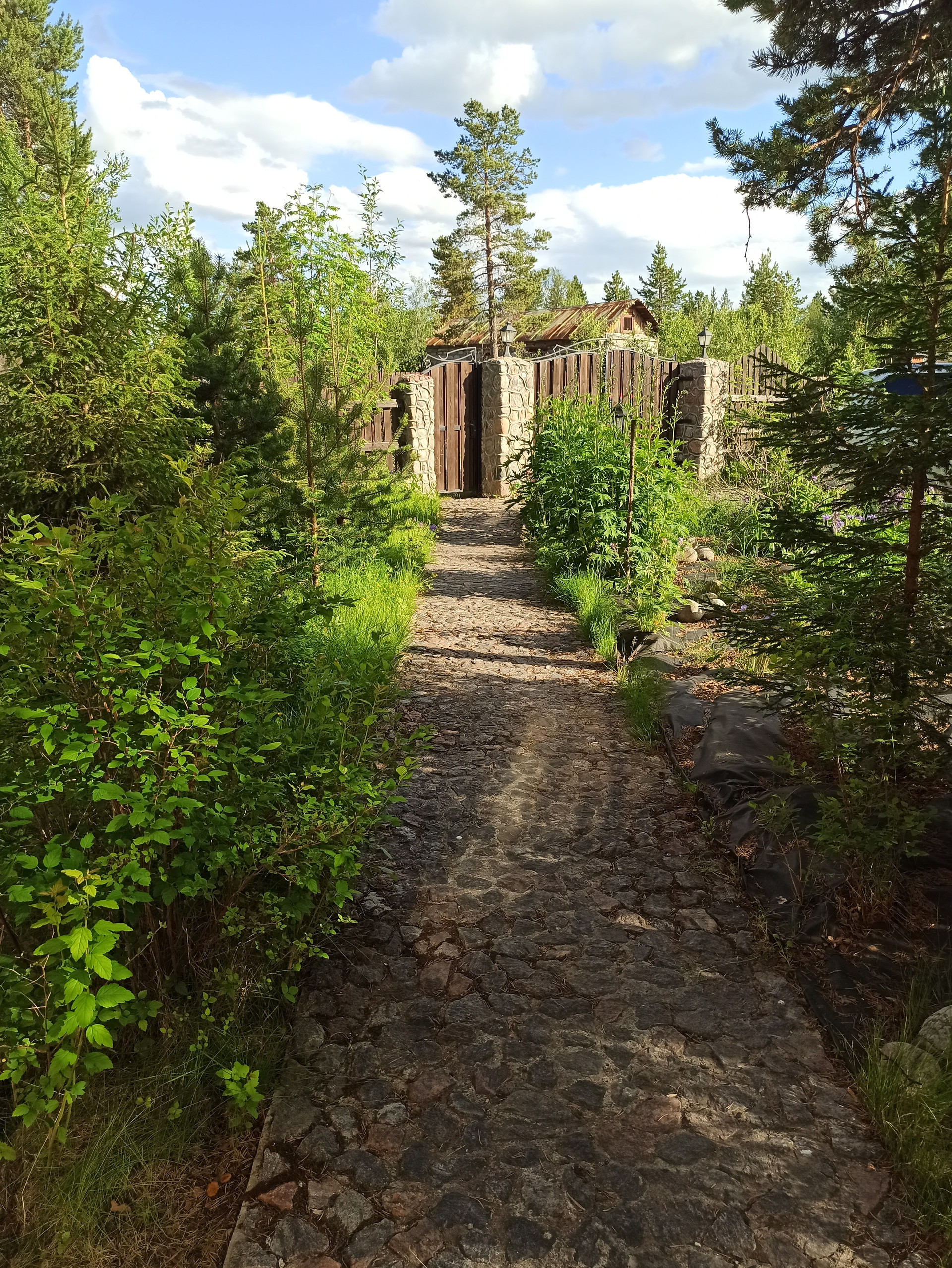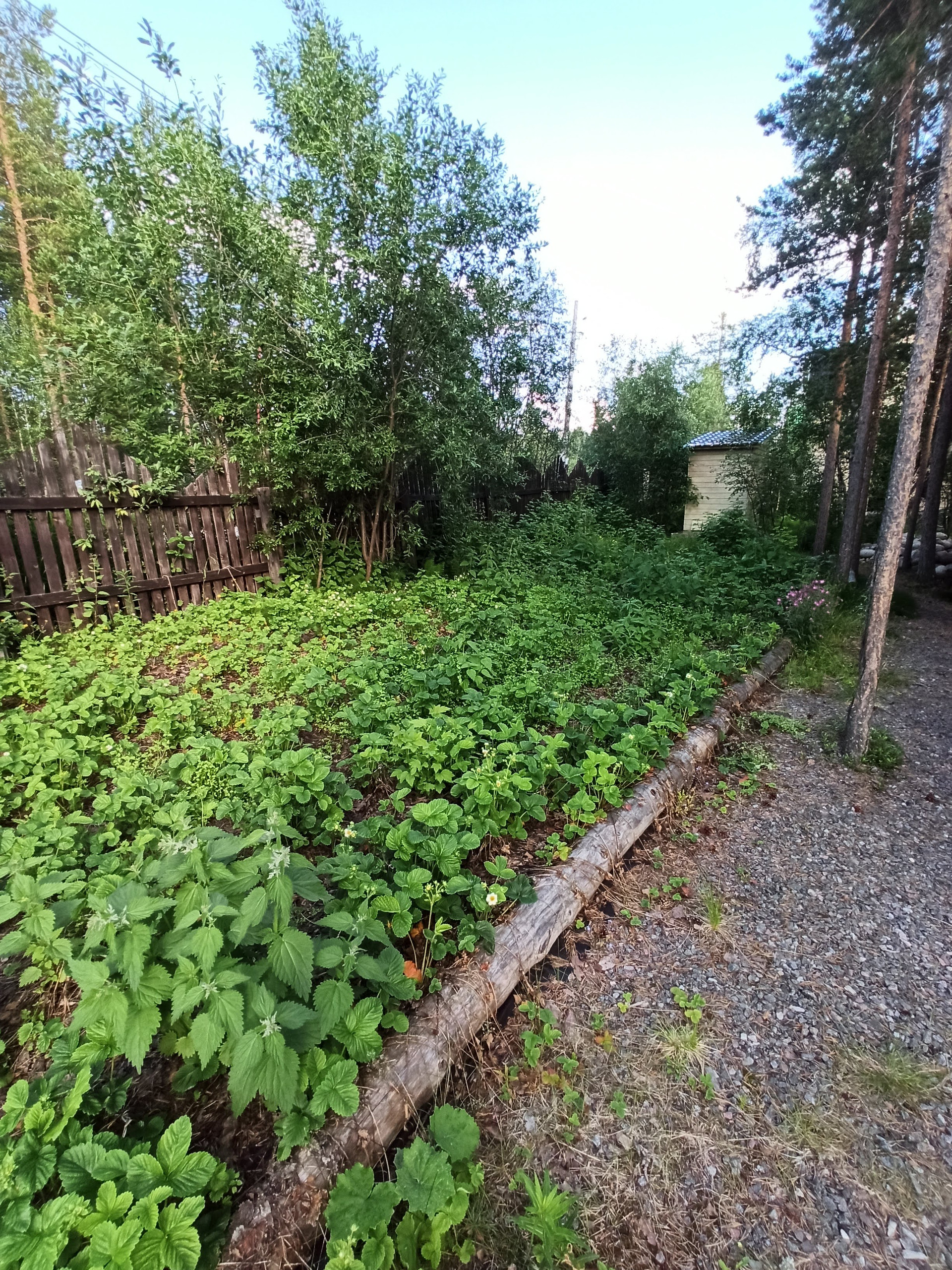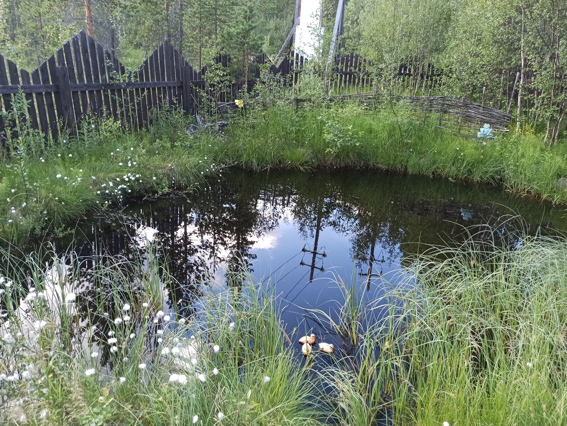Во дворе качели, чум, дровяник, сарай, теплица, прудик, 2 плантации клубники, 2 куста малины, смородина.
