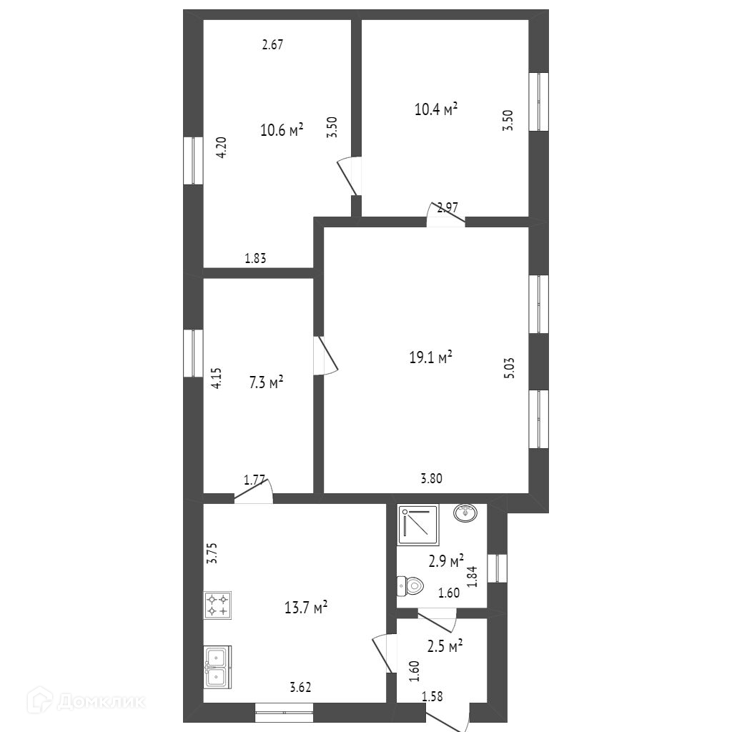 Общая площадь 66.5 м2