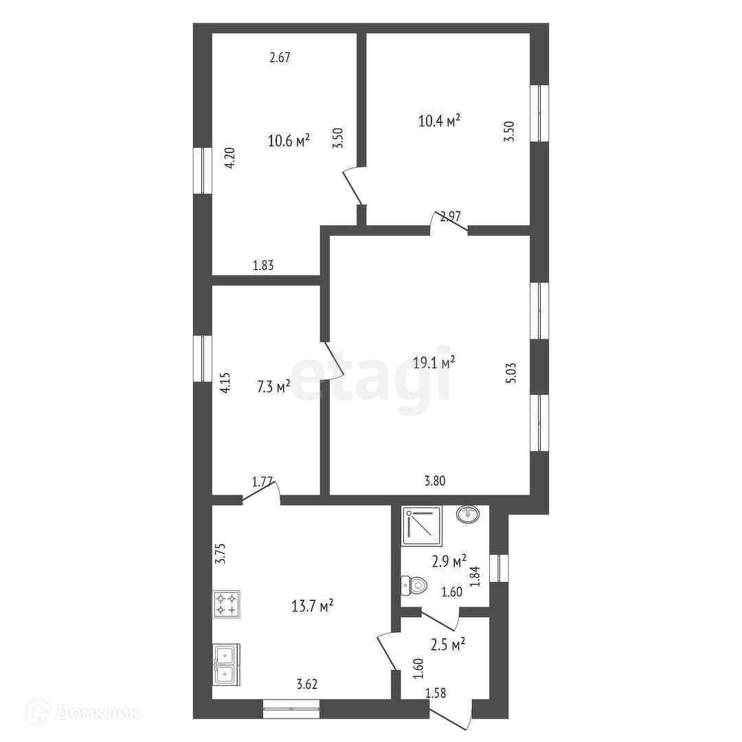 3-комнатная квартира, 66.5 м2, этаж 1 / 1, на продажу на железнодорожной станции Шарданово, Индустриальная улица, 18