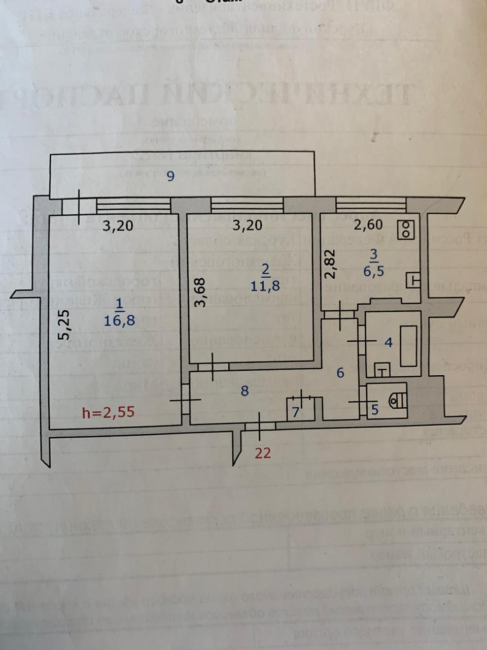 Площадь кухни 6.5 м2