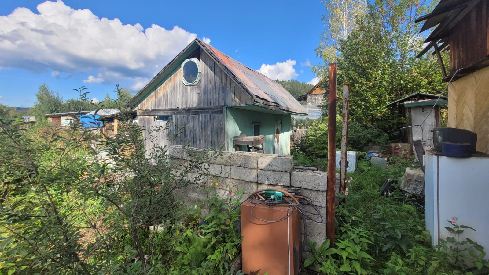 Сложен из кругляка.