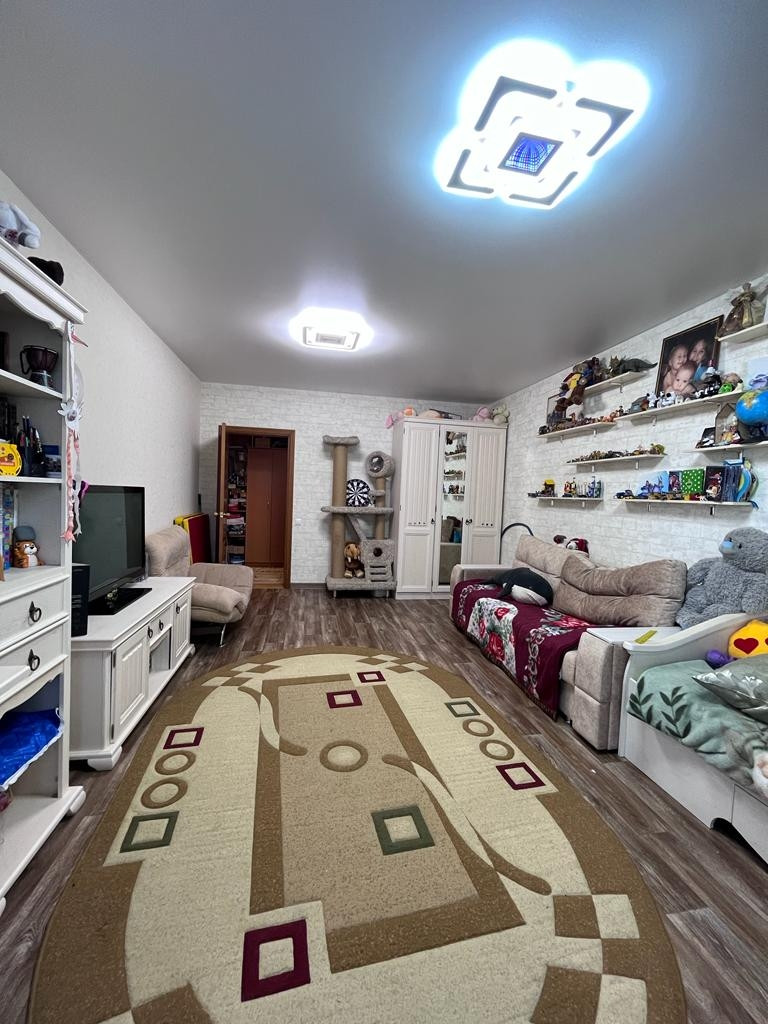 Современный ремонт, пластиковые окна, балконы остеклены, санузлы плитка, большая кухня, кухонный гарнитур делали на заказ, потолки натяжные, отличные двери, квартира уютная, теплая, хорошие соседи.
